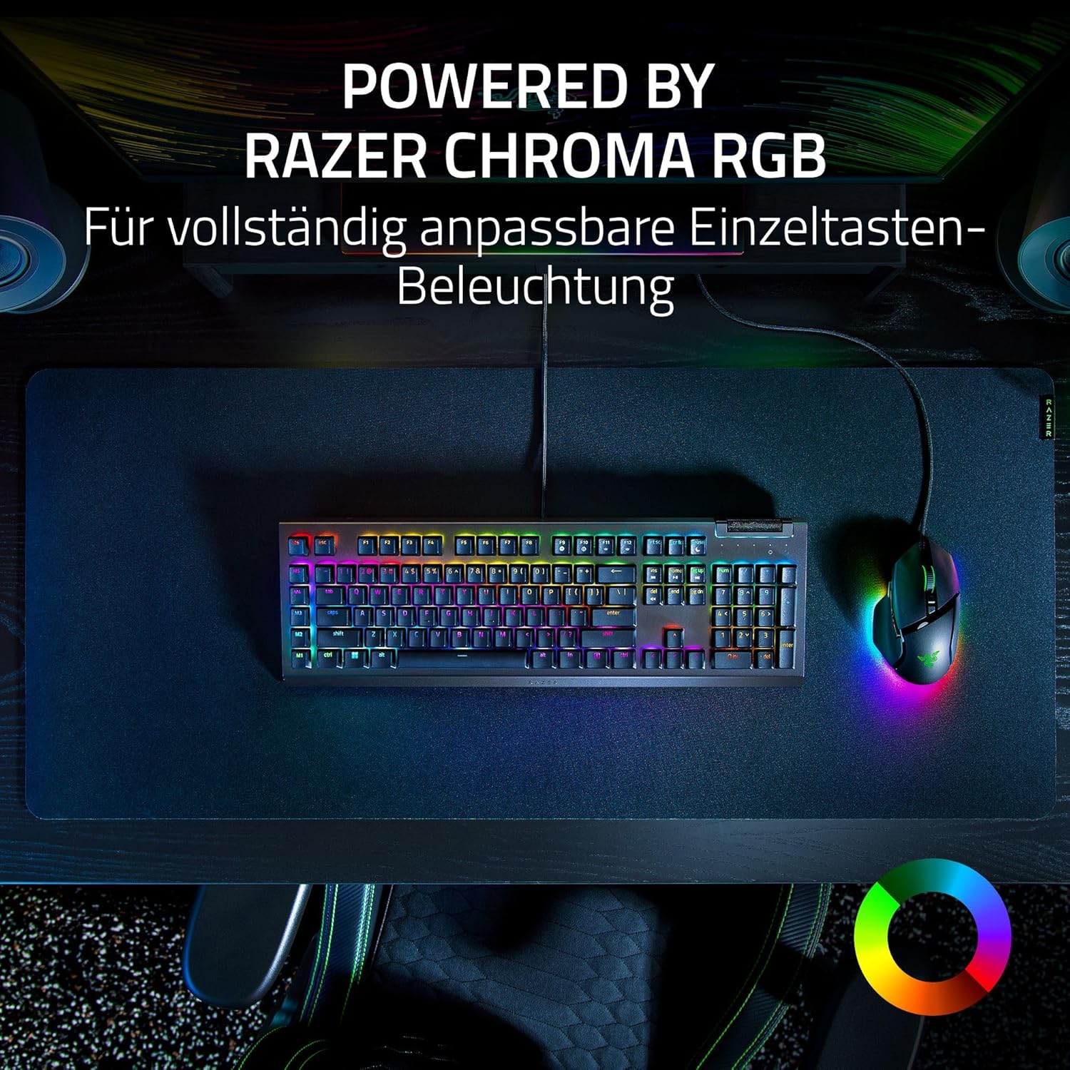 • Двустранно осветление на долната част и осветление на всеки клавиш, задвижвано от Razer Chroma RGB: Осветлението на всеки клавиш и хипнотизиращото осветление на долната част осветяват клавиатурата от още повече ъгли, перфектно синхронизирани с вашата Battle Station за още по-голямо потапяне в стотици поддържани игри.
