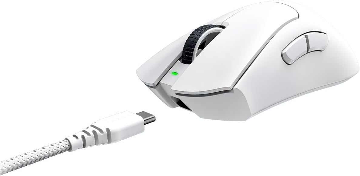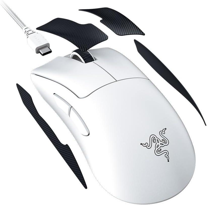 Razer DeathAdder V3 Pro - Лека безжична ергономична мишка за електронни спортове (64g лек дизайн, Focus Pro 30K оптичен сензор, Gen-3 превключватели на мишка, HyperSpeed ​​​​Wireless) Бяла