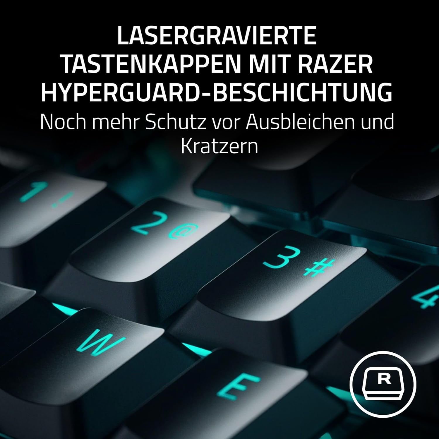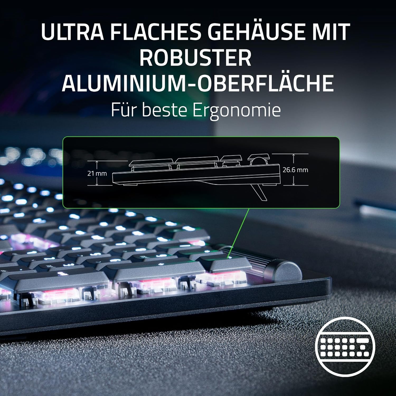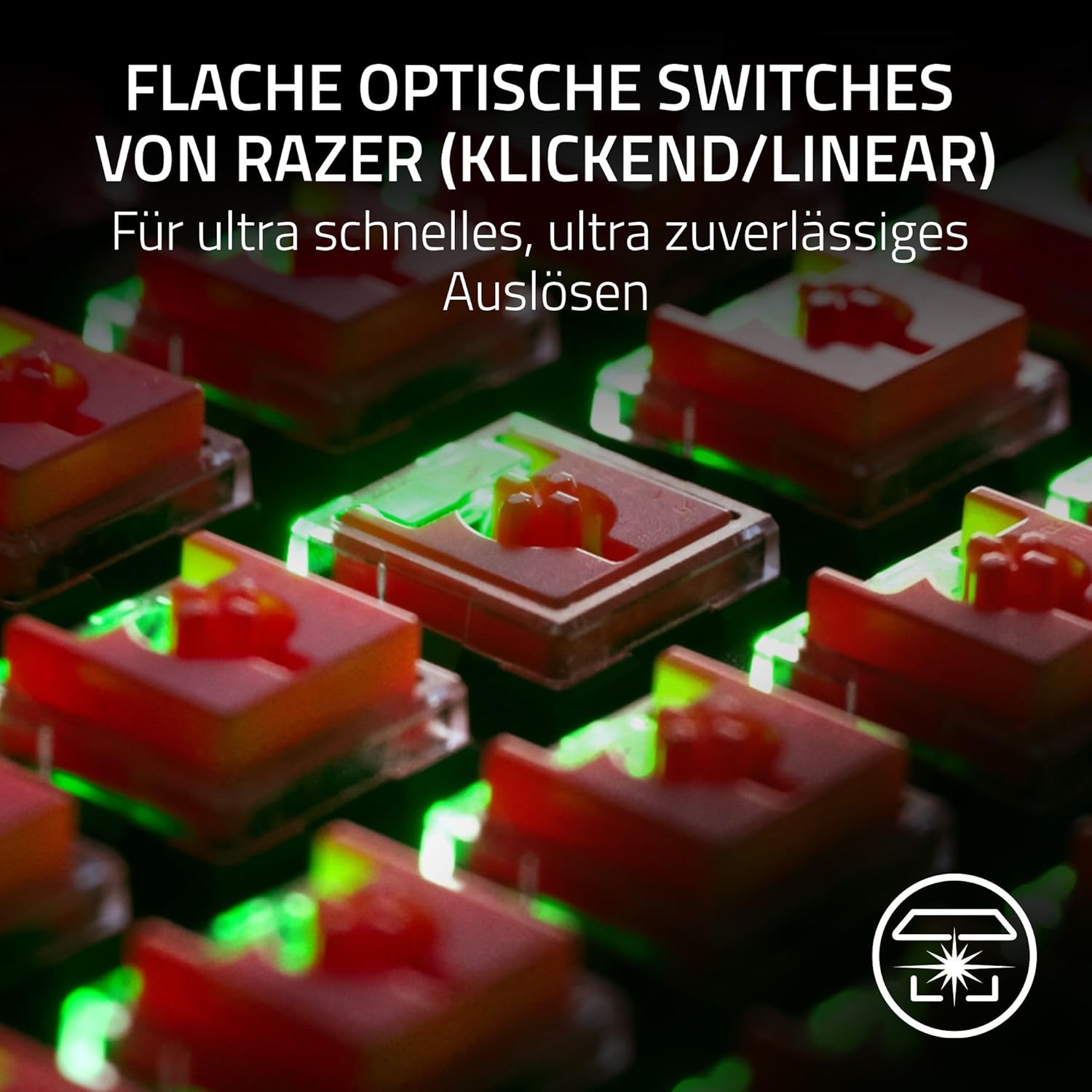 Razer DeathStalker V2 Pro (червен превключвател) - Безжична оптична нископрофилна геймърска клавиатура (линейни оптични превключватели, хиперскоростна безжична връзка, Bluetooth 5.0) QWERTZ DE Layout | Черен