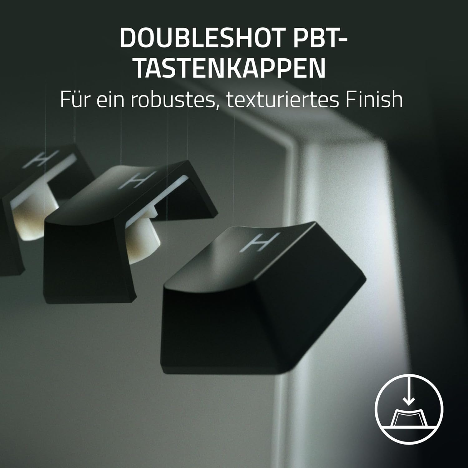 • Текстурирани PBT клавиши с двойно нанесен печат с вторични функции отпред: Тези клавиши са дори по-издръжливи от обикновените, а устойчивият им на износване дизайн и устойчивите на избледняване букви ги правят идеални за интензивна състезателна употреба — включително вторични функции, отпечатани отпред за лесно четене.