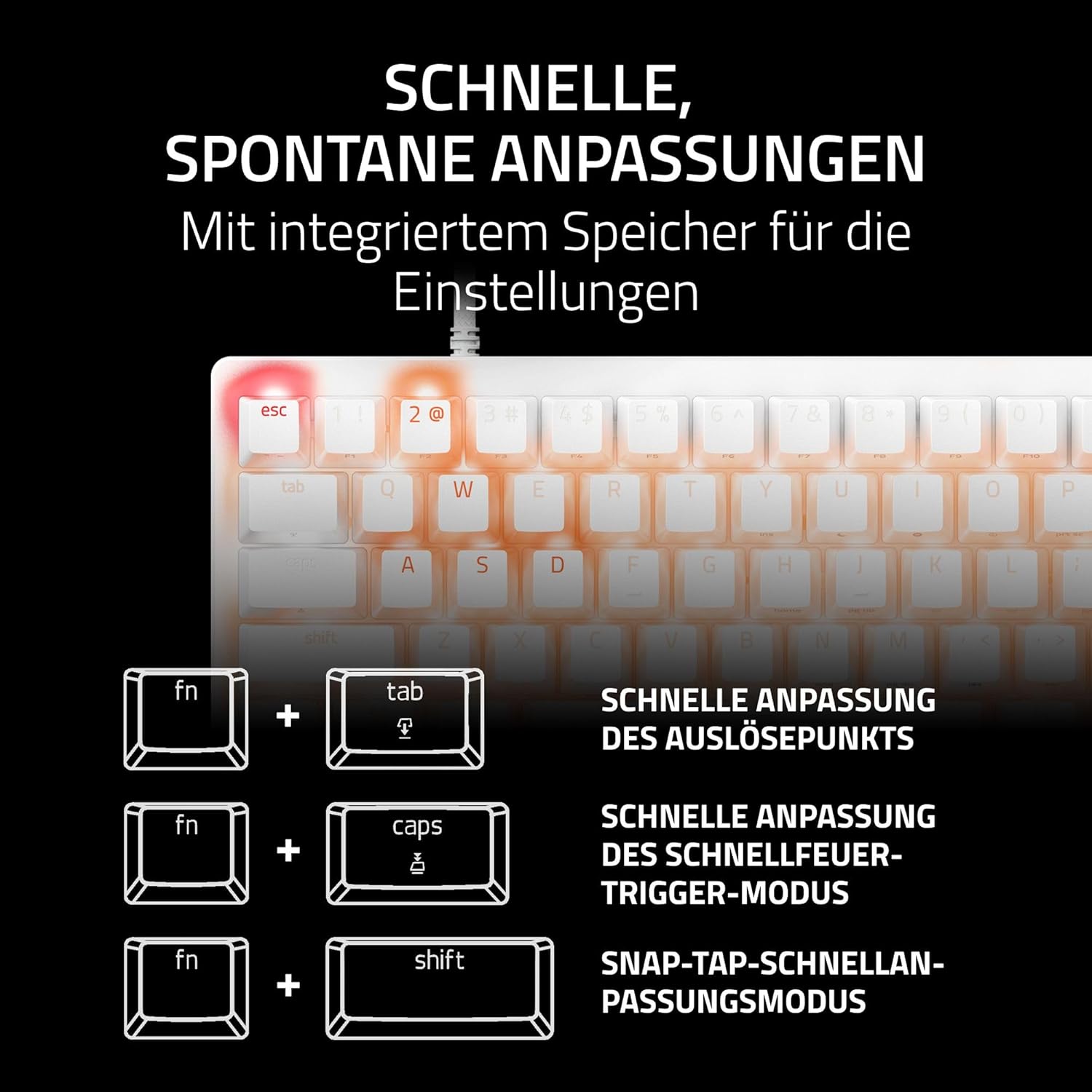 Razer Huntsman V3 Pro Mini - Аналогова оптична клавиатура за електронни спортове, 60% формат - Snap Tap - Бързо задействане - Многофункционални модификаторни клавиши - Doubleshot PBT клавиши - QWERTZ DE оформление | Бяла