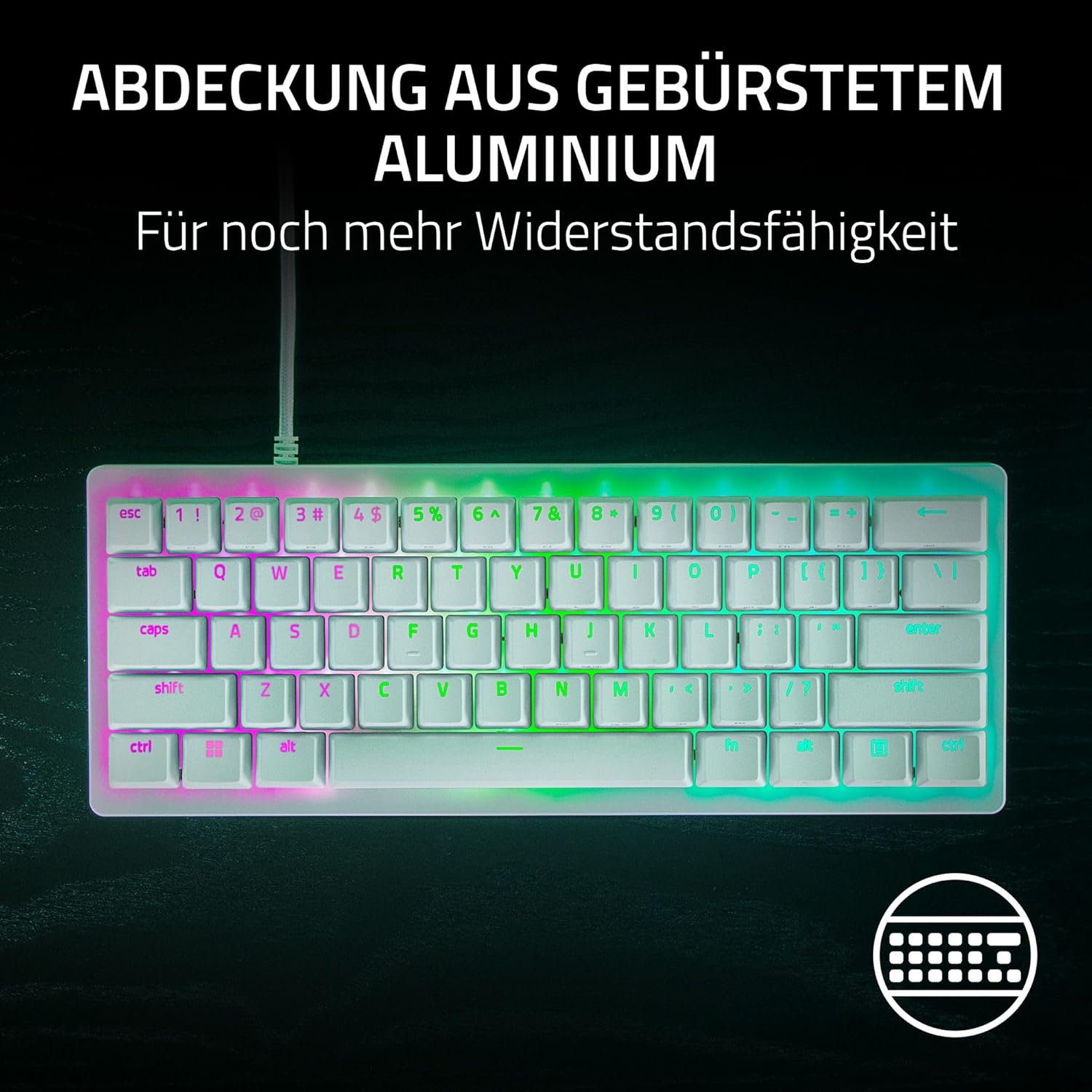 Razer Huntsman V3 Pro Mini - Аналогова оптична клавиатура за електронни спортове, 60% формат - Snap Tap & Rapid Trigger (цифрови контролни клавиши, двойни PBT капачки) US Layer | Бяла