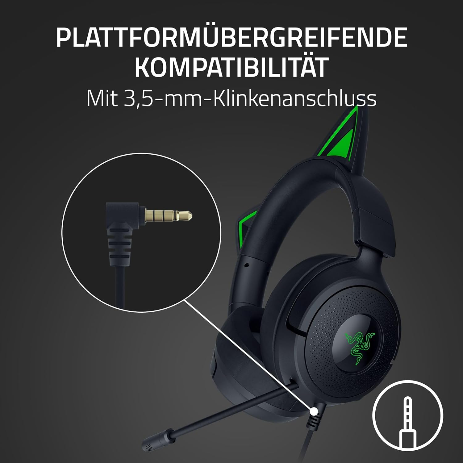 • Уши и наушници тип „котешки“ Захранвани от Razer Chroma RGB: Благодарение на 16,8 милиона цвята и безброй ефекти, можете да регулирате осветлението на слушалките според насъщността си и да създадете индивидуален стил, който перфектно подчертава вашата уникална личност.