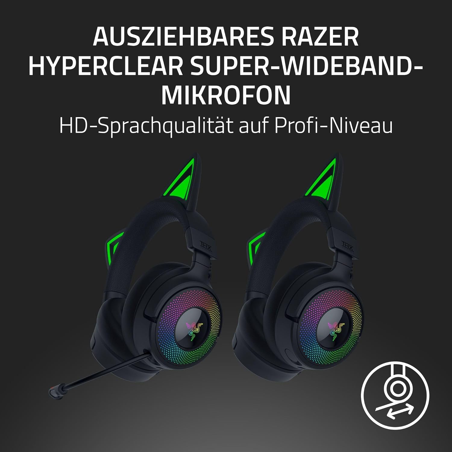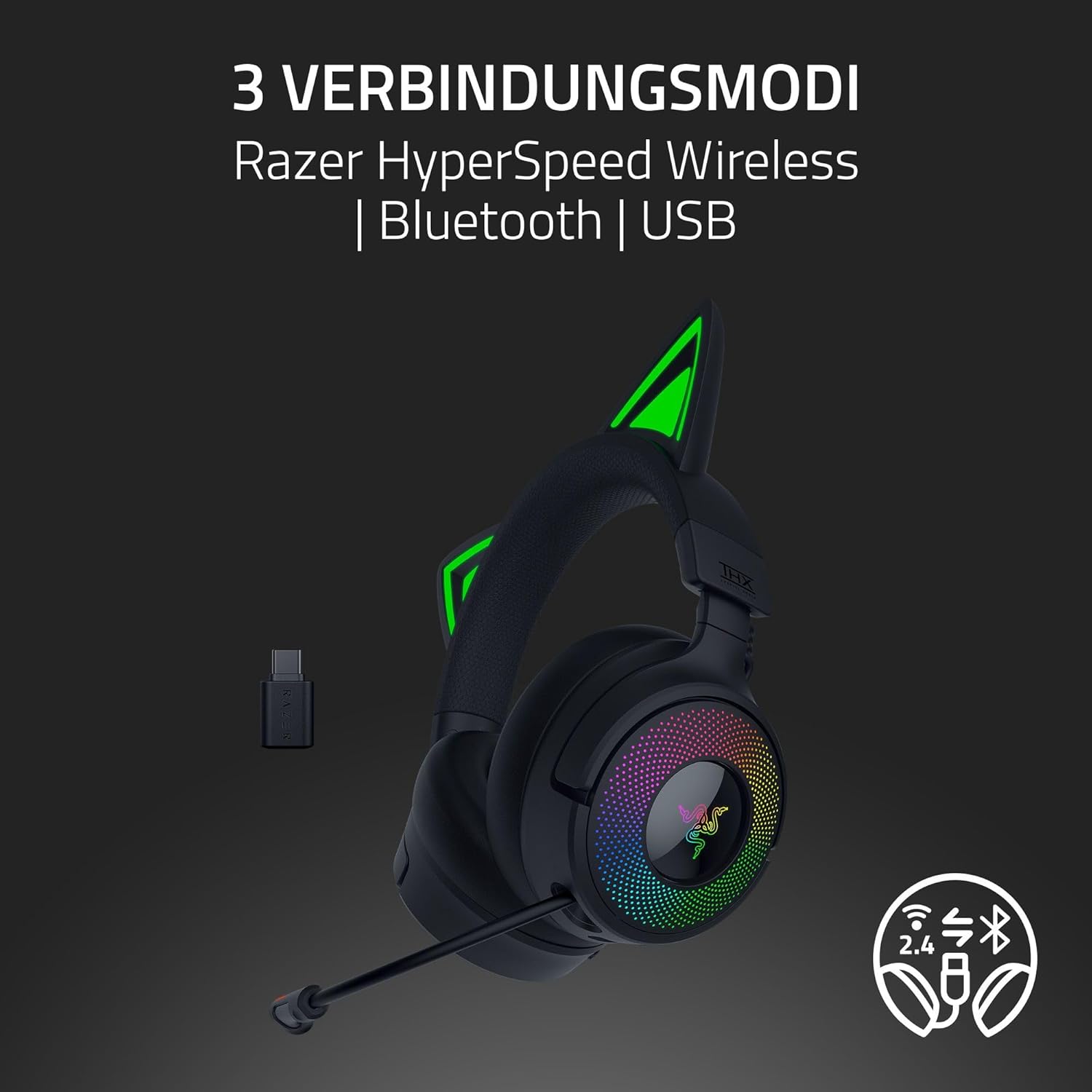 Razer Kraken Kitty V3 Pro - Безжични RGB Kitty слушалки за игри - Реактивни стрийминг котешки уши - Triforce 40 мм драйвер - Хиперскоростна безжична връзка и Bluetooth - THX пространствено аудио | Черен