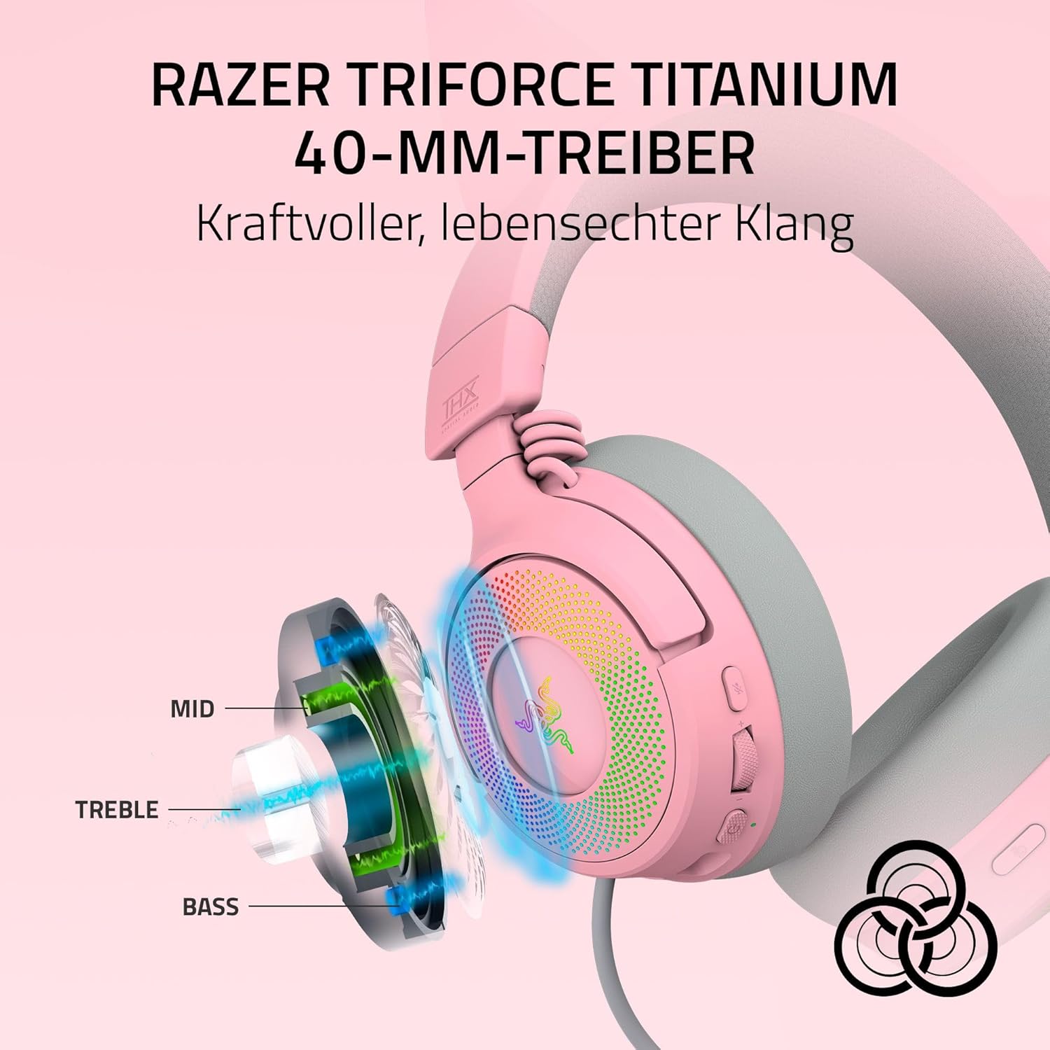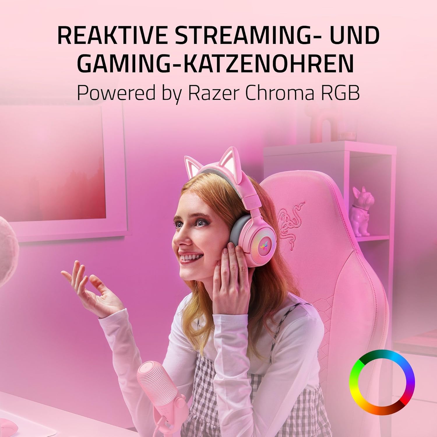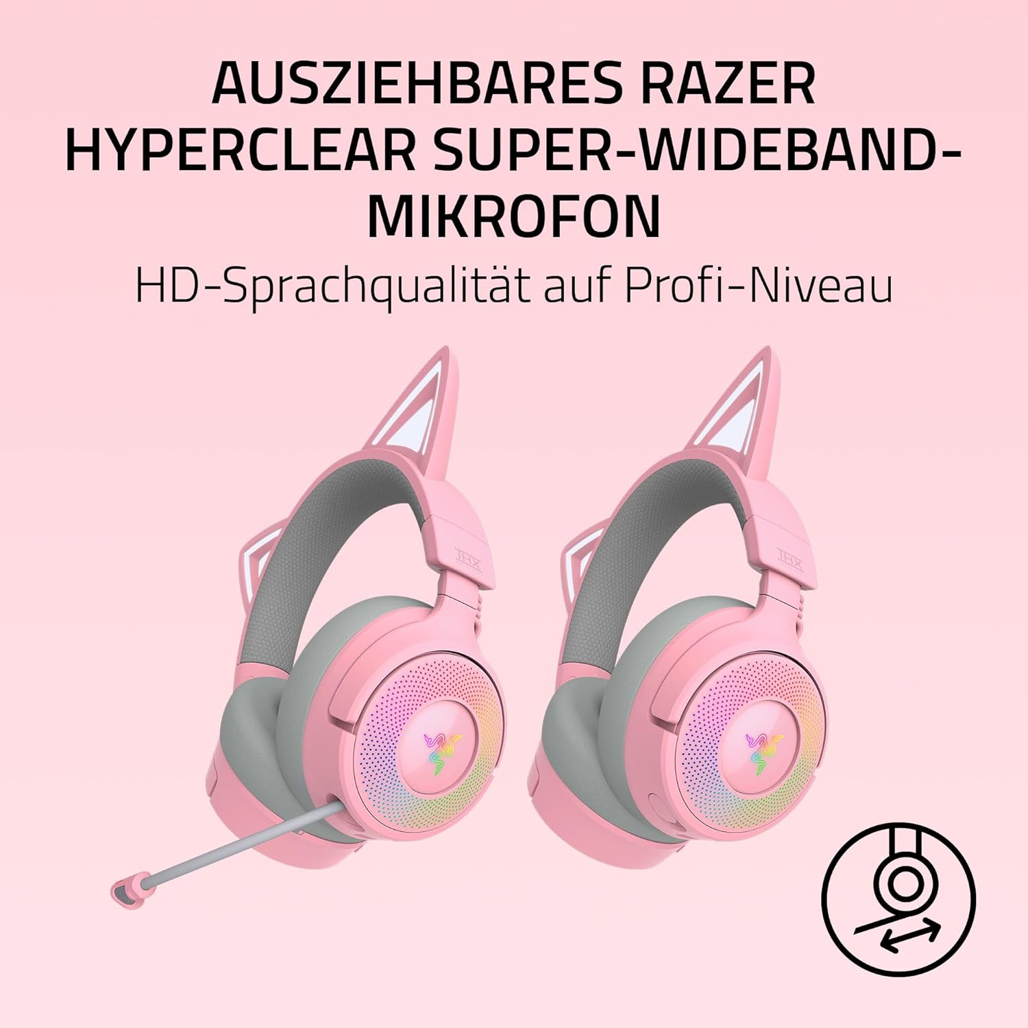 Razer Kraken Kitty V3 Pro - Безжични RGB Kitty слушалки за игри - Реактивни стрийминг котешки уши - Triforce 40 мм драйвер - Хиперскоростна безжична връзка и Bluetooth - THX Spatial Audio | Quartz