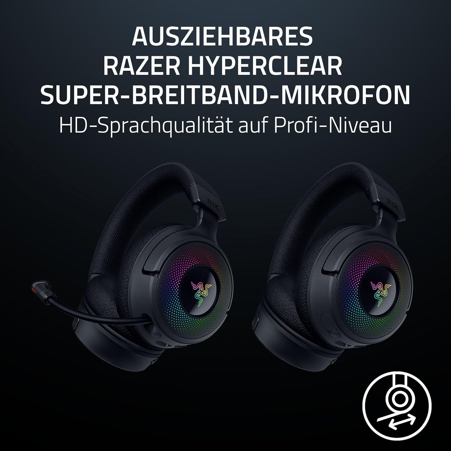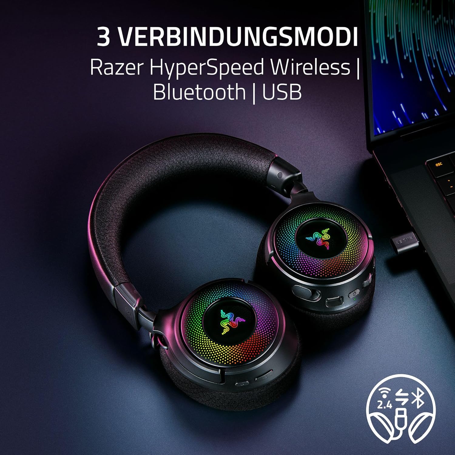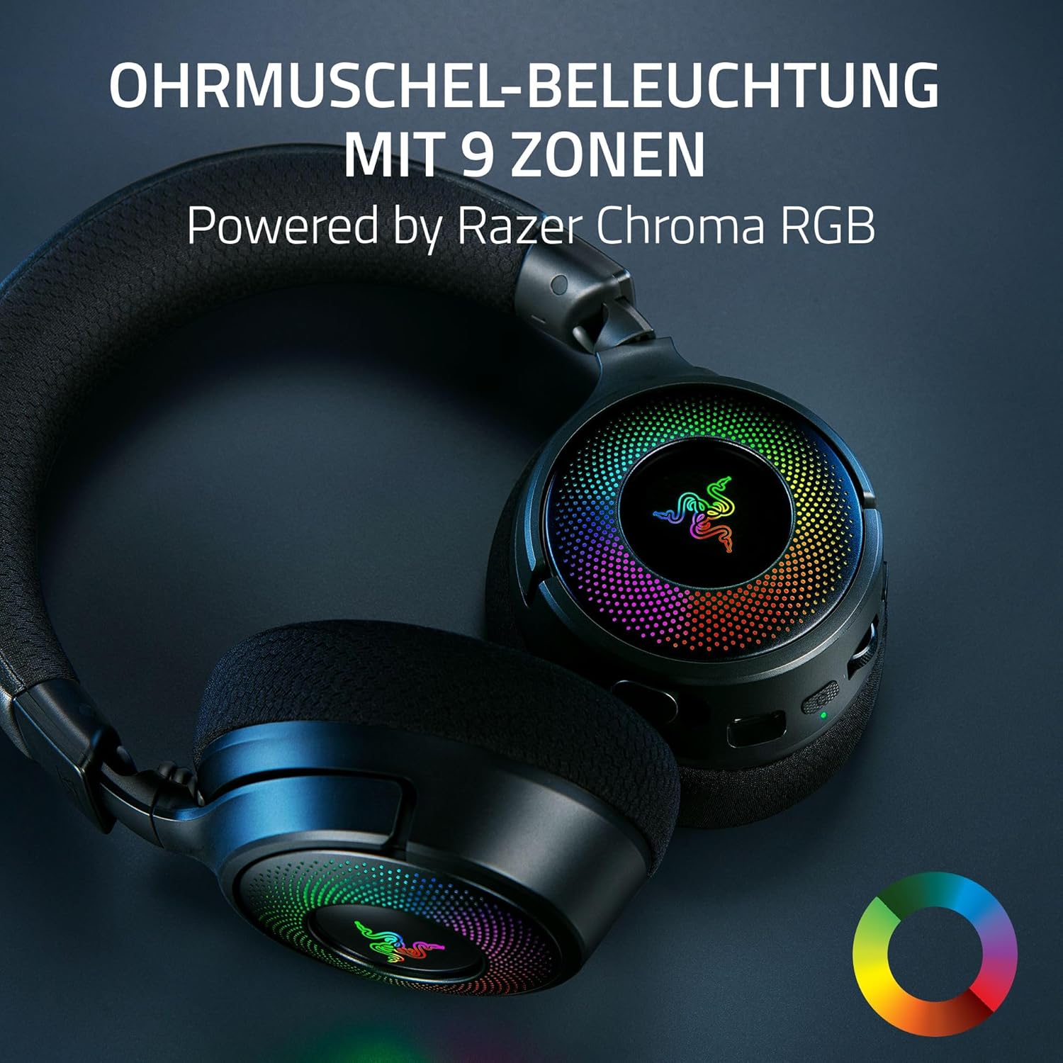 Razer Kraken V4 - Безжични геймърски слушалки за компютър (3-режимна свързаност, Triforce 40 мм драйвери, 9-зоново RGB осветление на наушниците, контрол на микса и силата на звука, THX пространствено аудио) Черни