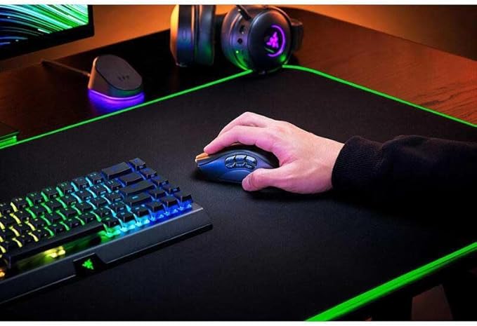 • Razer HyperSpeed ​​​​Wireless (2.4 GHz) и Bluetooth Ultra ниска латентност или дълъг живот на батерията: Изпитайте безпроблемна и практически безлатентна производителност благодарение на безжичната технология, която е с 25% по-бърза от сравними технологии, или преминете към Bluetooth за още по-дълга игра. Поддържайте множество устройства за минималистична настройка.