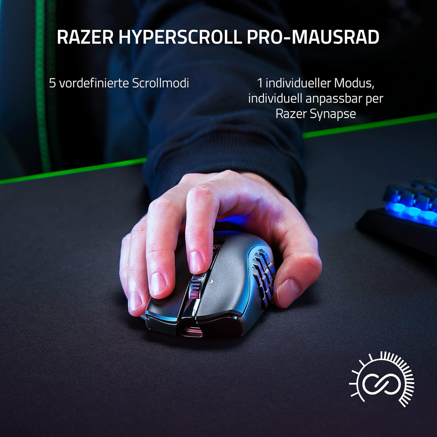 • Задвижвано от Razer HyperScroll Свободно въртящо се или тактилно колелце на мишката: превъртайте съдържанието мигновено в режим на свободно въртене. Активирайте тактилния режим за още по-голяма прецизност и богата обратна връзка, идеален за превключване между оръжия или умения.