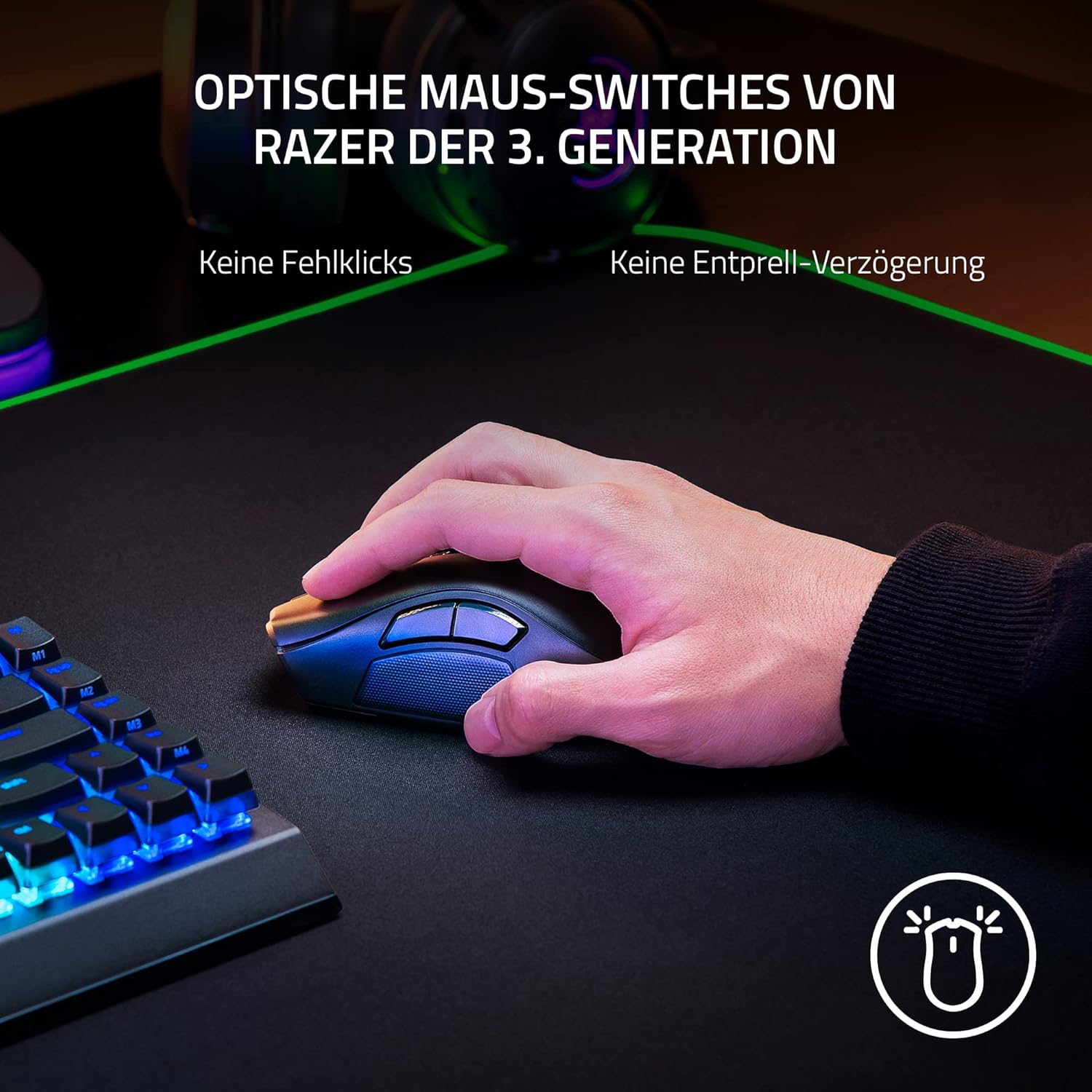 • Механични превключватели за мишки от Razer, второ поколение. За още по-голяма издръжливост и надеждност: Позлатените контакти осигуряват още по-добра защита срещу преждевременно износване и вече издържат до 60 милиона кликвания – за ясно и надеждно задействане при всяко щракване.