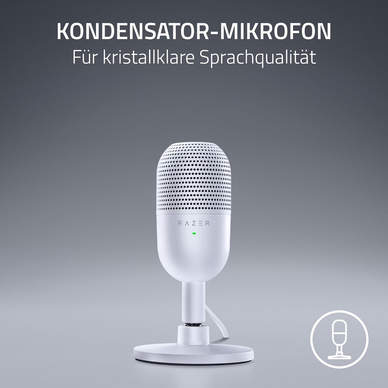 Razer Seiren V3 Mini - Ултракомпактен USB микрофон (14 мм суперкардиоиден кондензаторен микрофон, сензор за изключване на звука с докосване с LED индикатор, вградена противоударна стойка, plug-and-play конструкция) Mercury