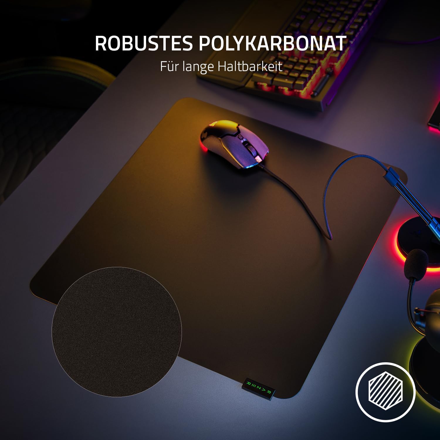 Твърдата, дори по-гладка повърхност осигурява плавно и прецизно проследяване, идеално за оптични сензори, а тъй като подложката за мишка вече е с 50% по-тънка, е удобно да бъде едно цяло с масата. Предлага се в малки и големи размери.