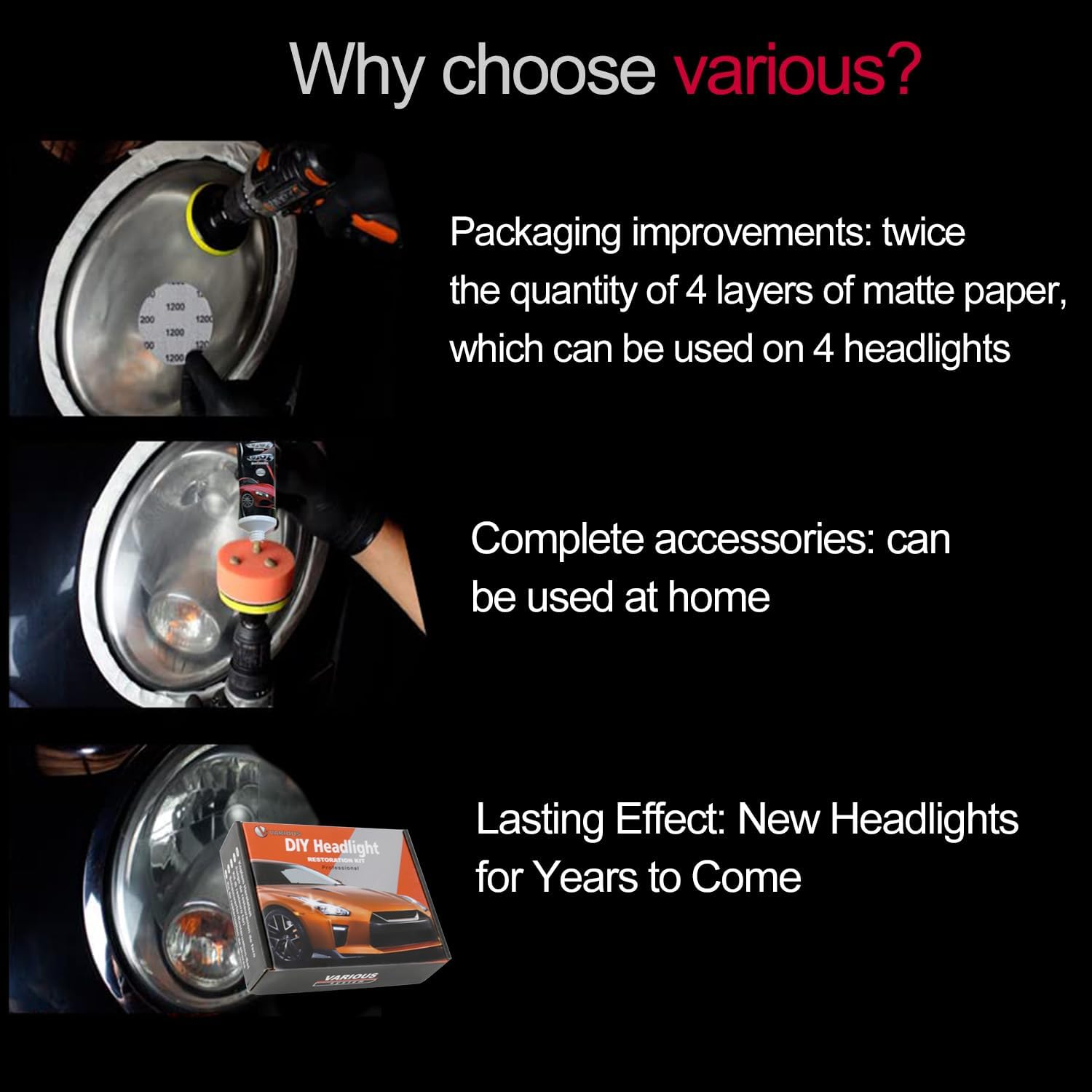 Комплектът е подходящ за напукване, пожълтяване, окисляване, замъгляване, лющене, надраскване и други симптоми.