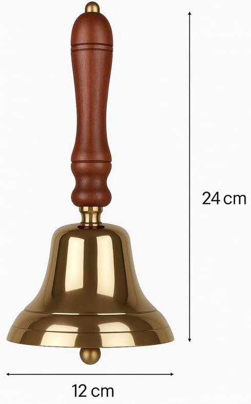 • Традиционна училищна ръчна камбанка: Традиционна училищна библиотечна ръчна камбанка, изработена от масивен месинг със стилна дървена дръжка за удобен захват. Нашата камбанка се отличава с класически и елегантен дизайн - красива ръчна камбанка с дървена дръжка. Специалният дизайн на дръжката предлага елегантен, привлекателен външен вид и е лесна за хващане при звънене. Проектирана за лесна употреба и работа, ръчната камбанка съчетава класически и елегантен дизайн с добра функционалност.