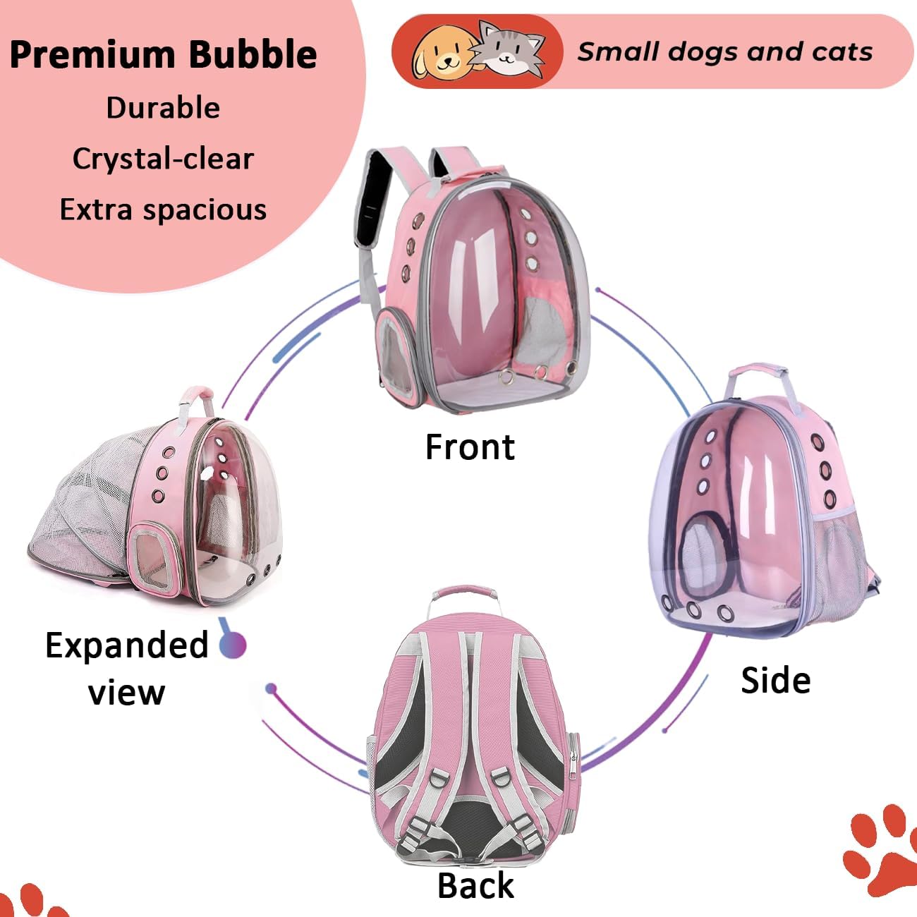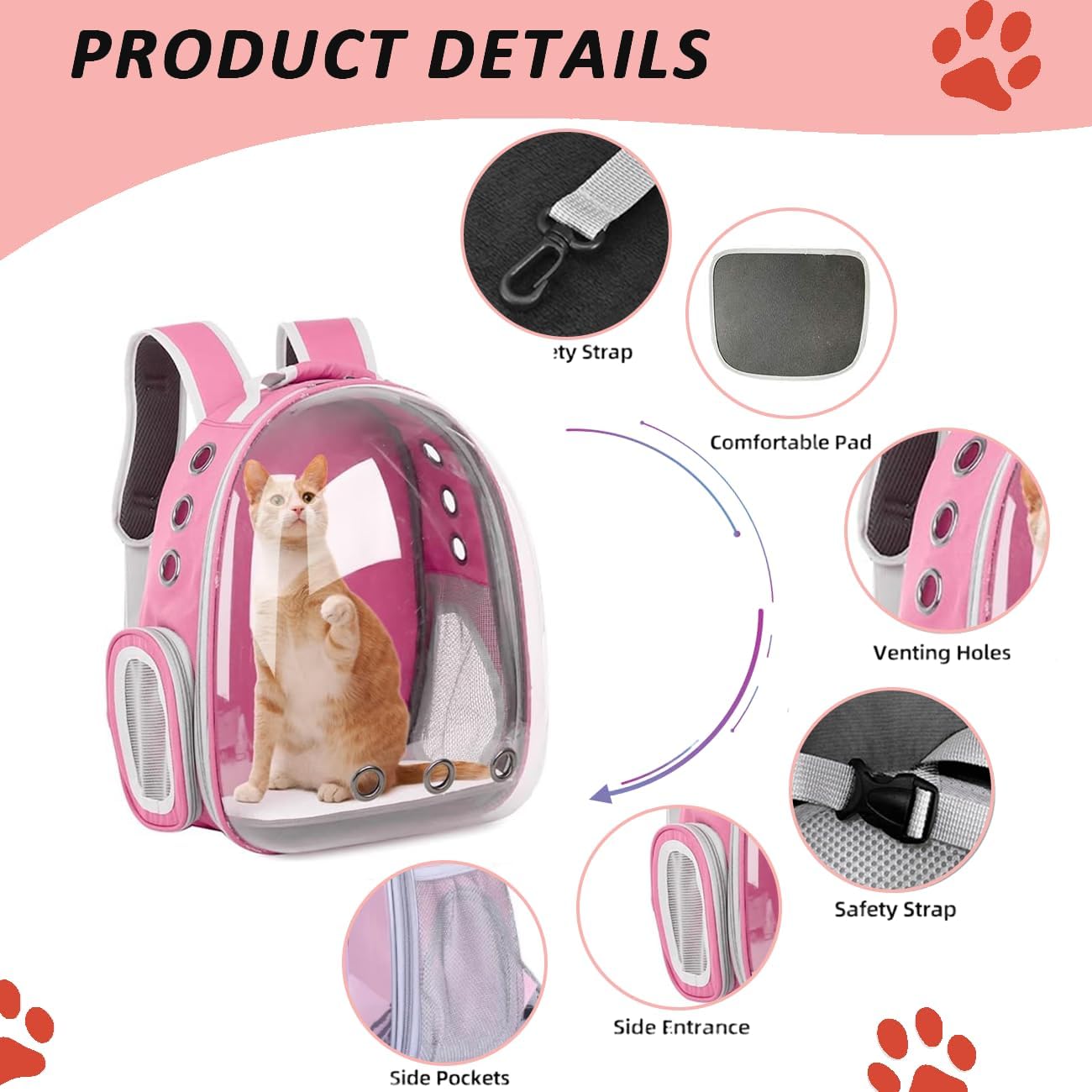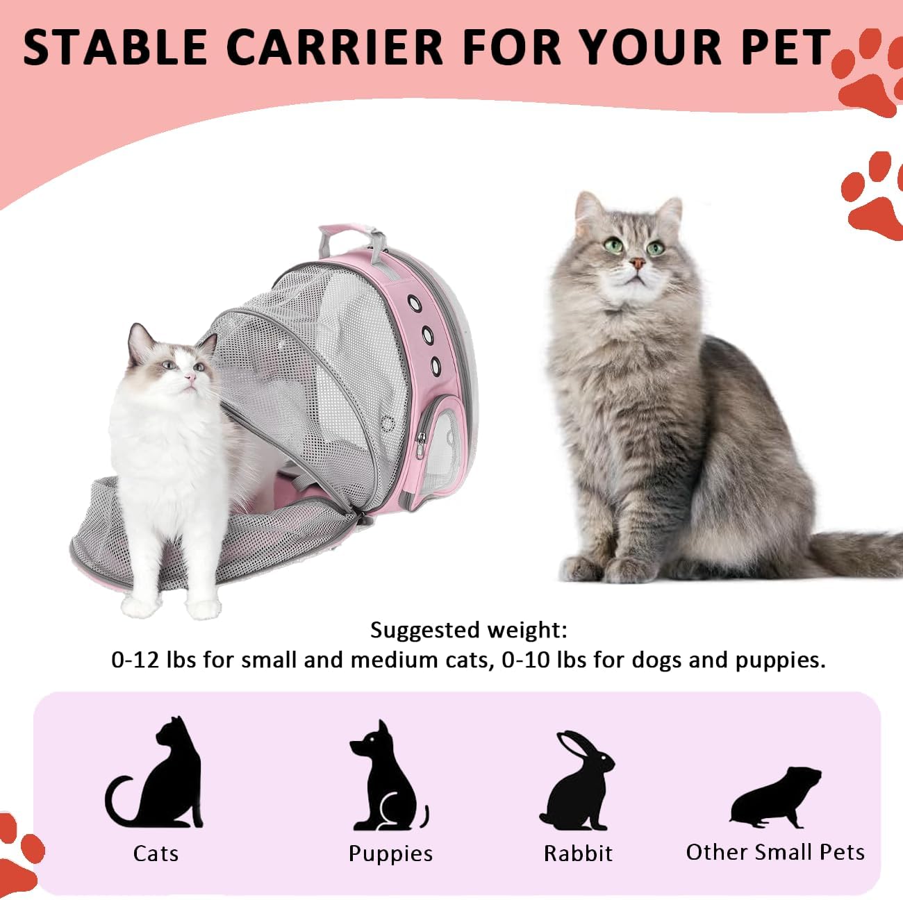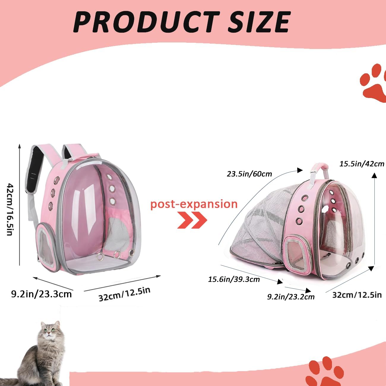 Разширяема раница за котки и кучета, предна раница за котки и малки кучета, с прозрачен прозорец и цип, за пътуване, туризъм (розова, разтегателен гръб)