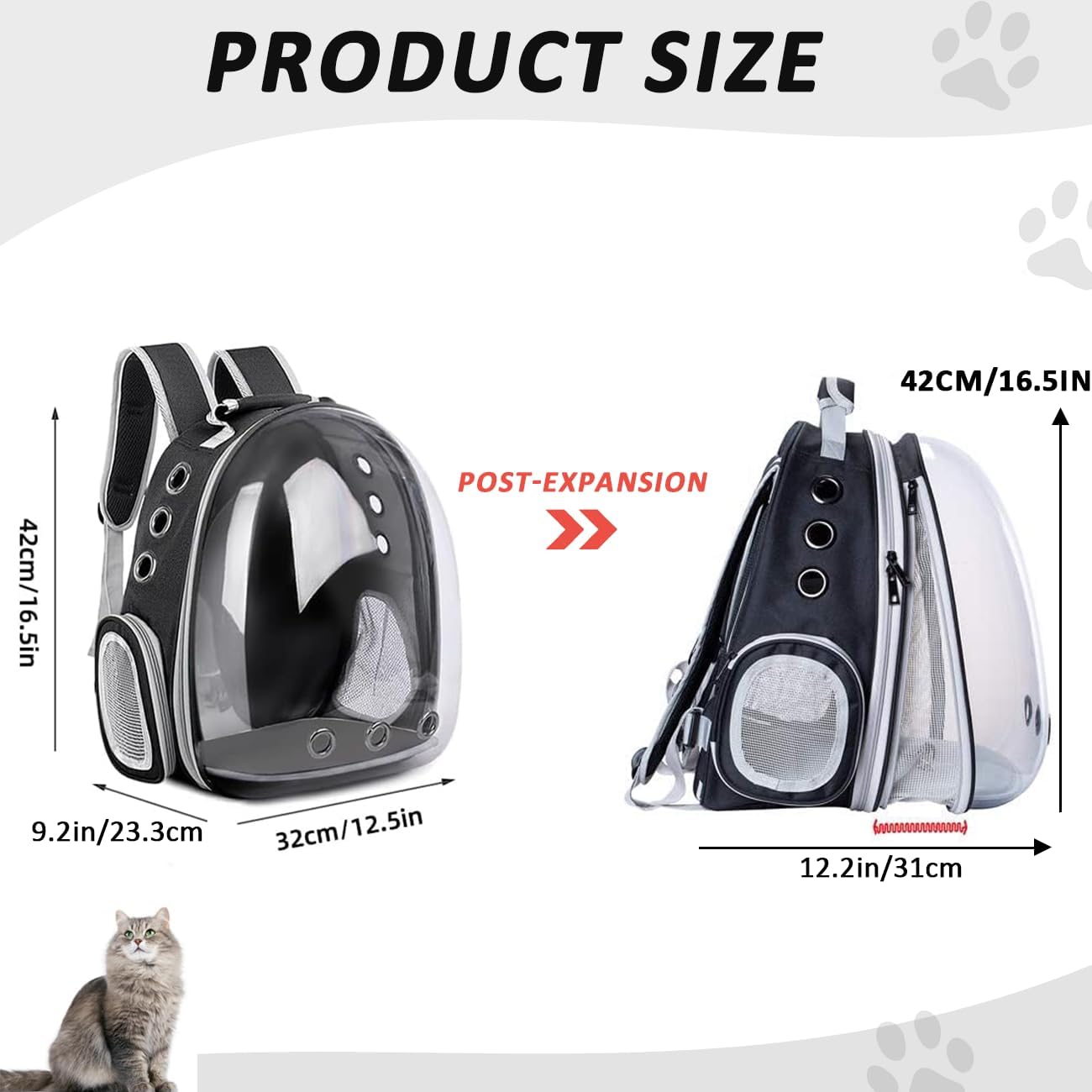 • Голяма, разширяема конструкция за допълнителен комфорт. Тази раница за котки може да се разтегне, за да удвои обема си и предлага повече място, за да може вашата котка или куче да се отпуснат по време на пътуване. С размери 23,5 см Д x 30,5 см Ш x 41,9 см В (размерът на разширяемата част е 41,9 см Д x 23,9 см Ш x 41,9 см В), тя е удобно подходяща за котки и малки кучета до 10 кг. Идеална е като чанта за носене на кучета до 10 кг или за кутии за транспортиране на котки.