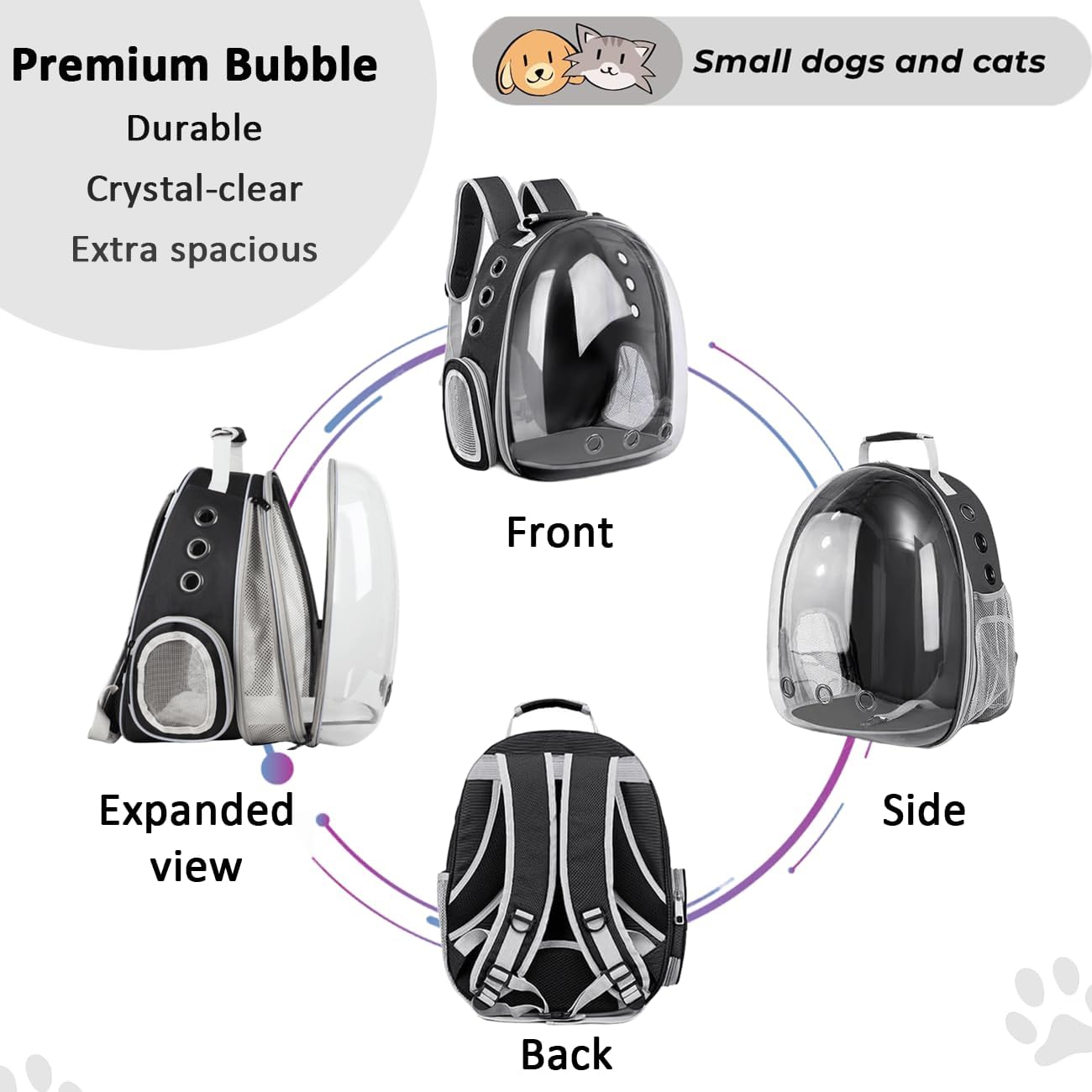 Разширяваща се раница за котки и кучета, предна раница за котки и малки кучета, с прозрачен прозорец и цип, за пътуване, туризъм (черна, разширяваща се отпред)