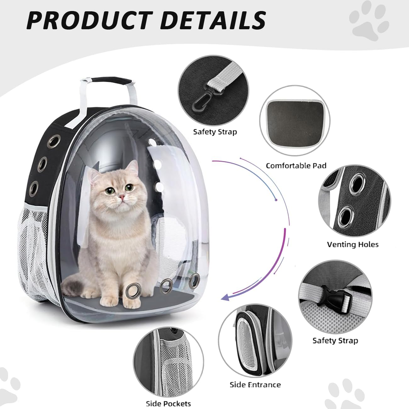 • Готова за приключения с допълнително място за съхранение. Тази раница за котки е снабдена със здрава основа, която осигурява допълнителна издръжливост. Двуслойната подплата абсорбира ударите по време на пътуване с кола или в самолет и гарантира, че котката ви е в безопасност. Чантата за бърз достъп е идеална за съхранение на лакомства или други важни неща за вашата транспортна кутия за котки.