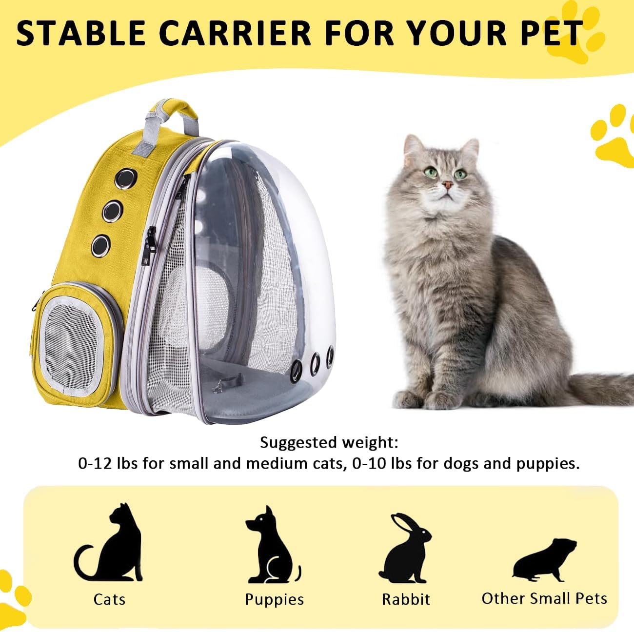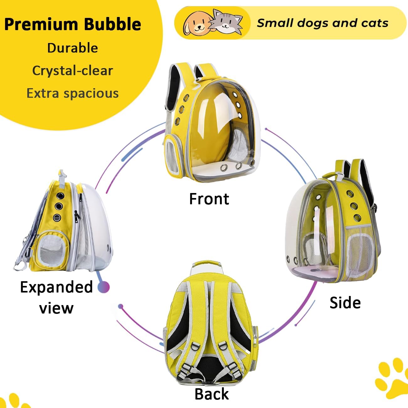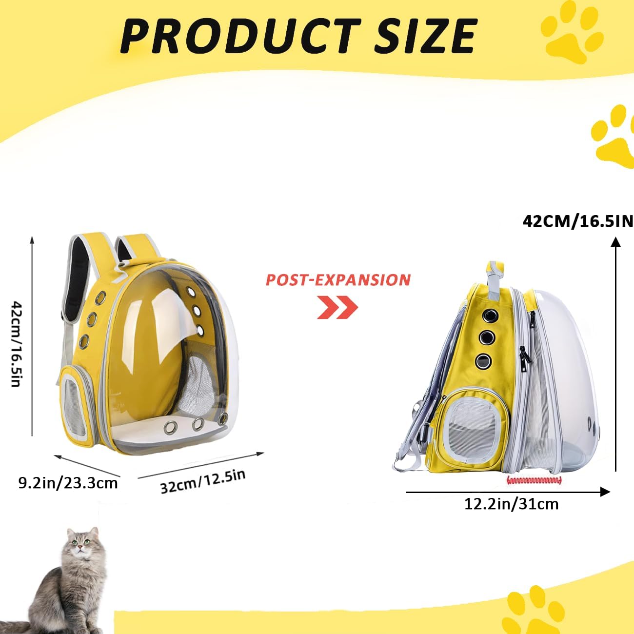 Разширяваща се раница за котки и кучета, предна раница за котки и малки кучета, с прозрачен прозорец и цип, за пътуване, туризъм (жълта, разширяваща се отпред)