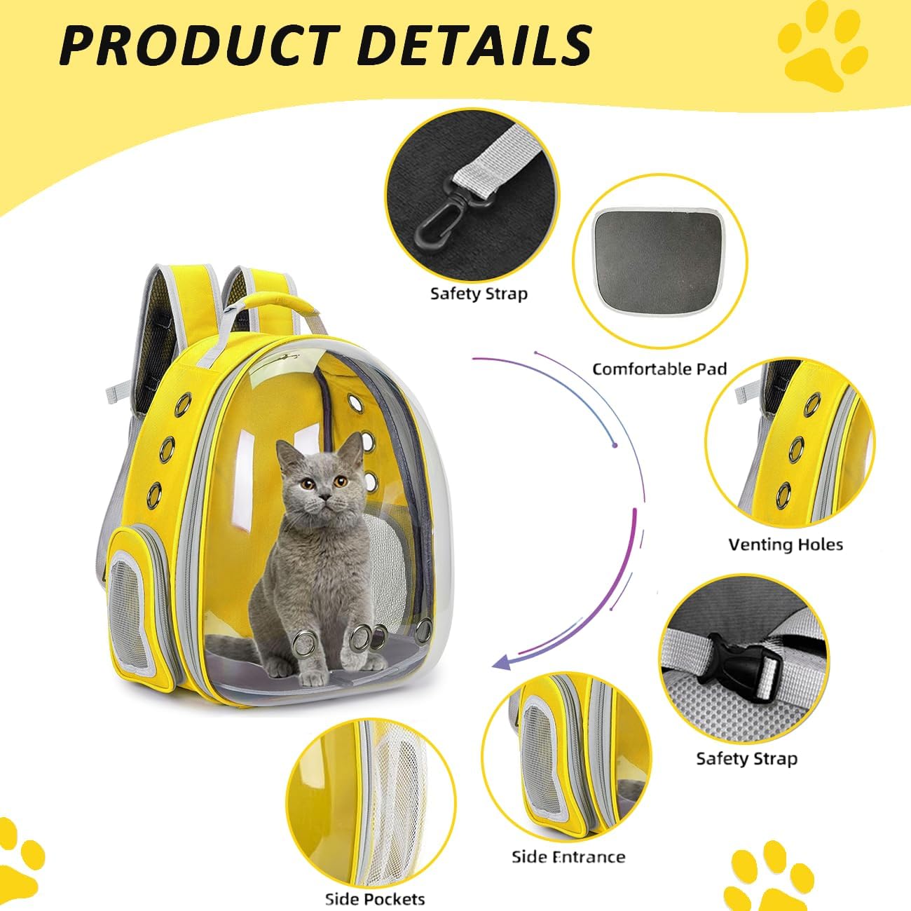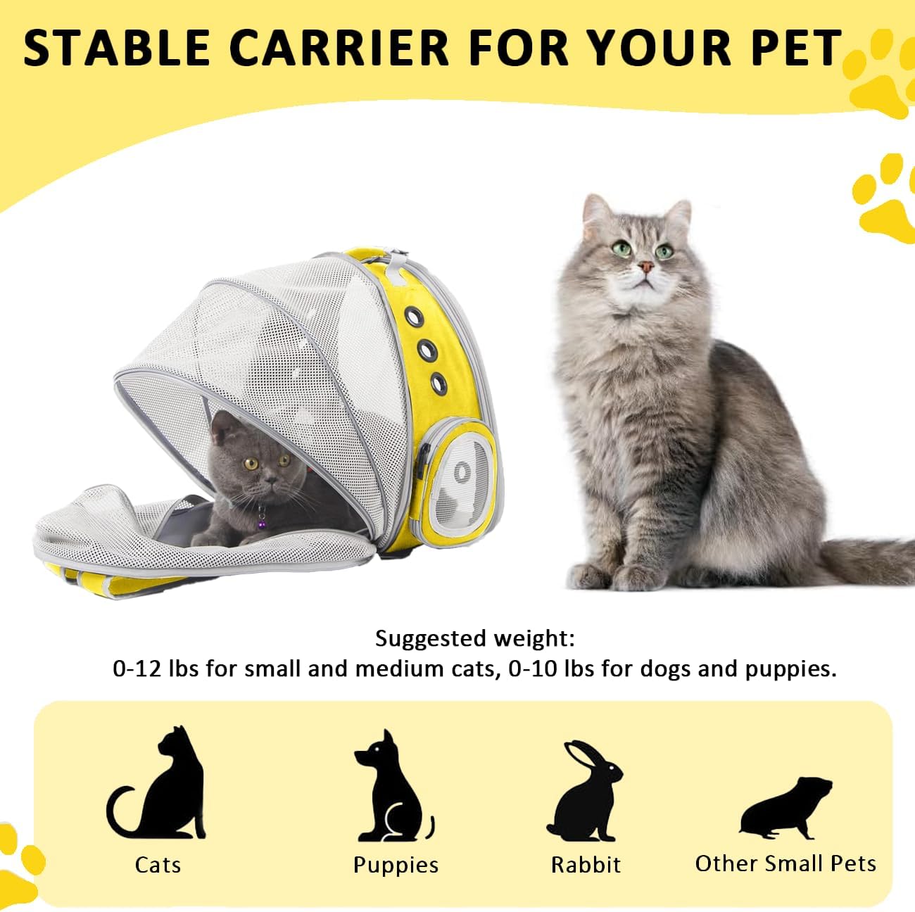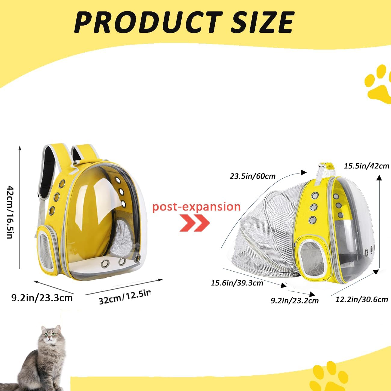 Разширяваща се раница за котки и кучета, предна раница за котки и малки кучета, с прозрачен прозорец и цип, за пътуване, туризъм (жълта, разтегателен гръб)