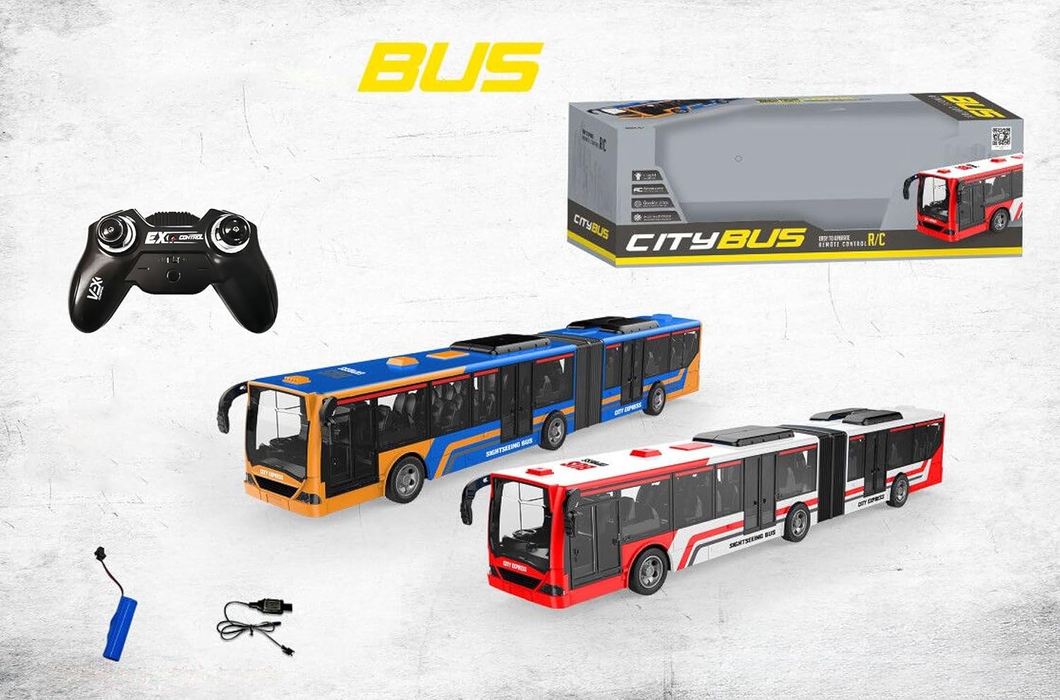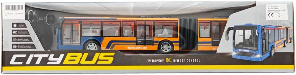 Този автобус с дистанционно управление се предлага в оранжево-синьо и червено-бяло. Доставката зависи от наличността. За съжаление не можем да гарантираме цвят.