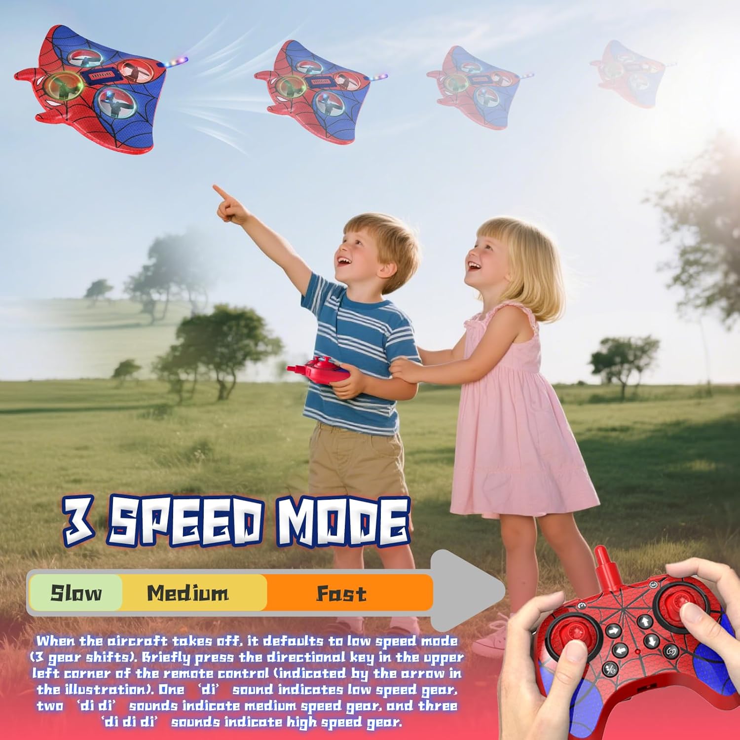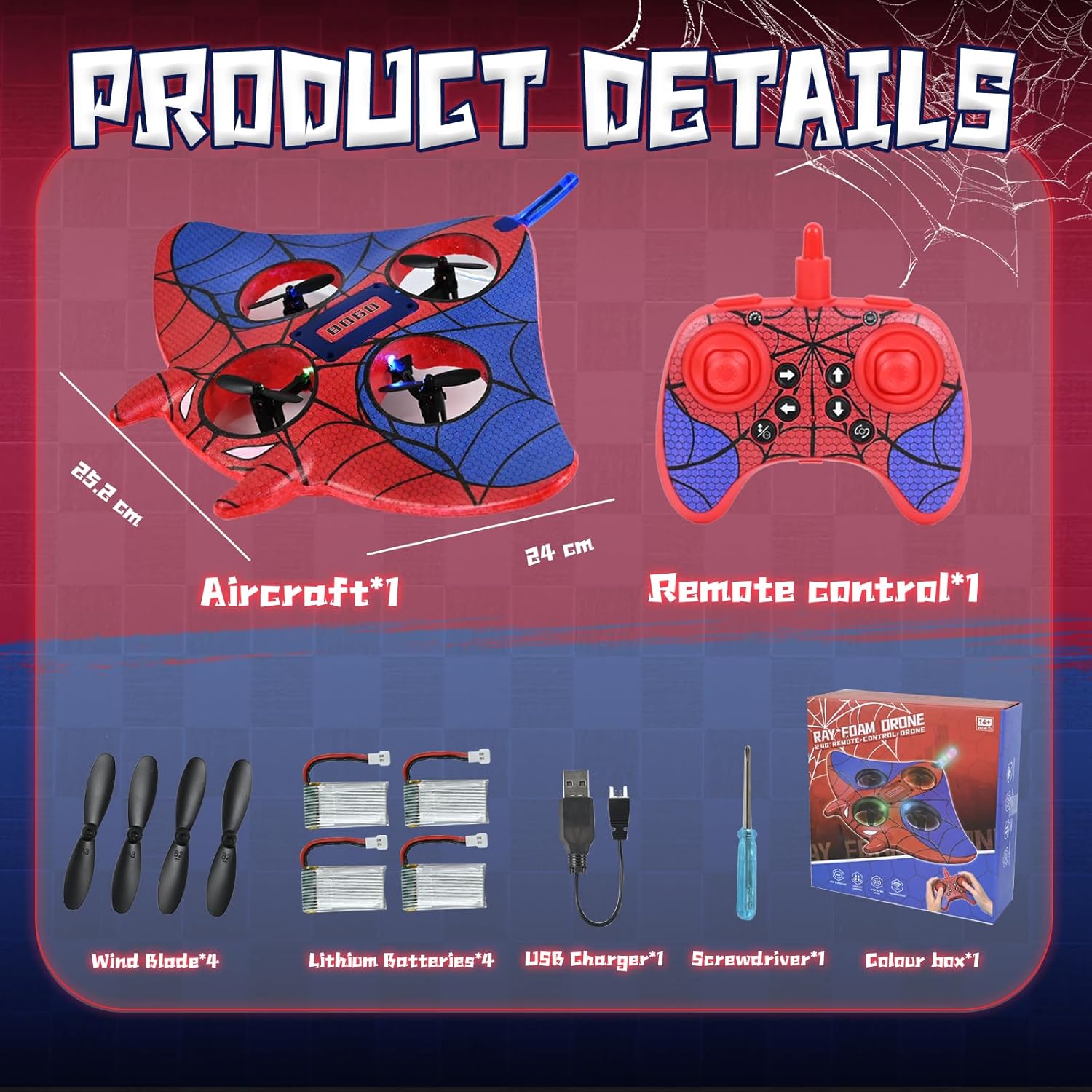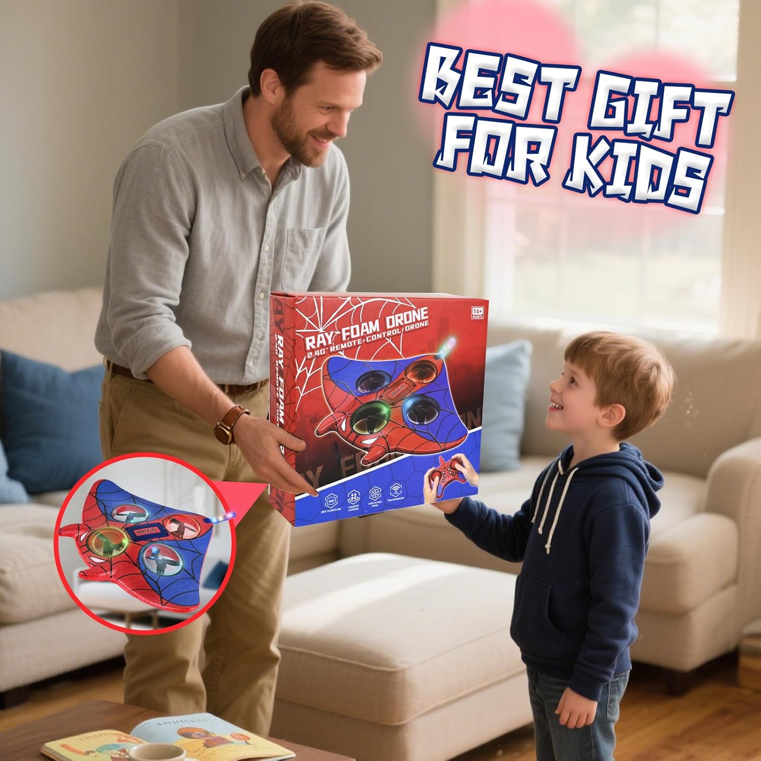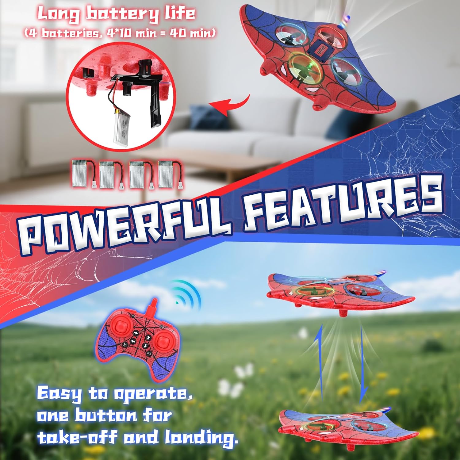 • Уникален външен вид + страхотно осветление: класическият червено-син дизайн е комбиниран с обтекаем фюзелаж на манта. Вградената LED система за осветление осигурява добра видимост по време на нощни полети, а страхотните светлинни ефекти правят детето ви център на вниманието. Дистанционното управление изисква 3 AAA батерии (не са включени).