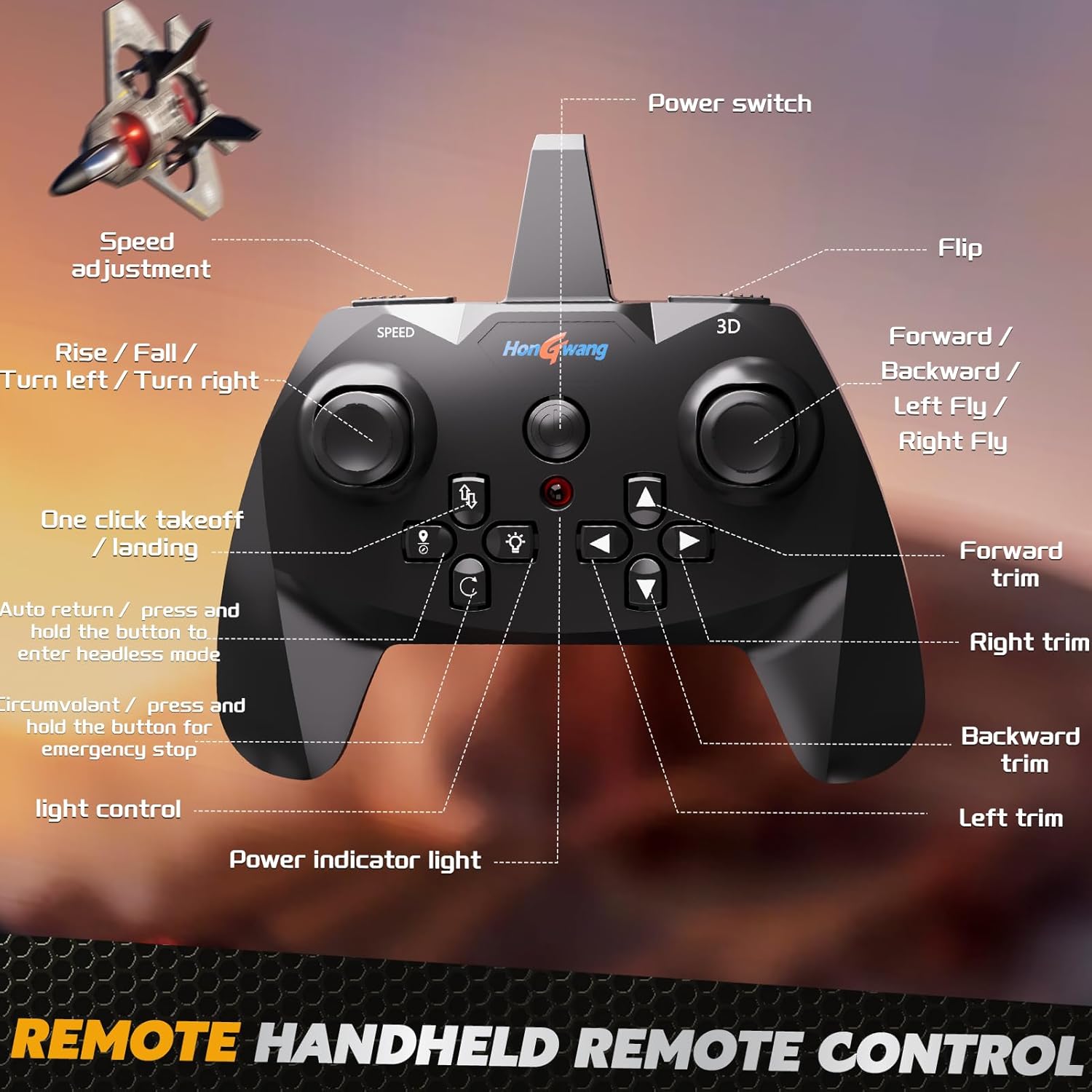RC самолет за деца от 8 години - дистанционно управляван самолет със светлина, 360° обръщане, задържане на височина, режим без глава, стартиране с един бутон, играчка за външен вид, подарък за момчета