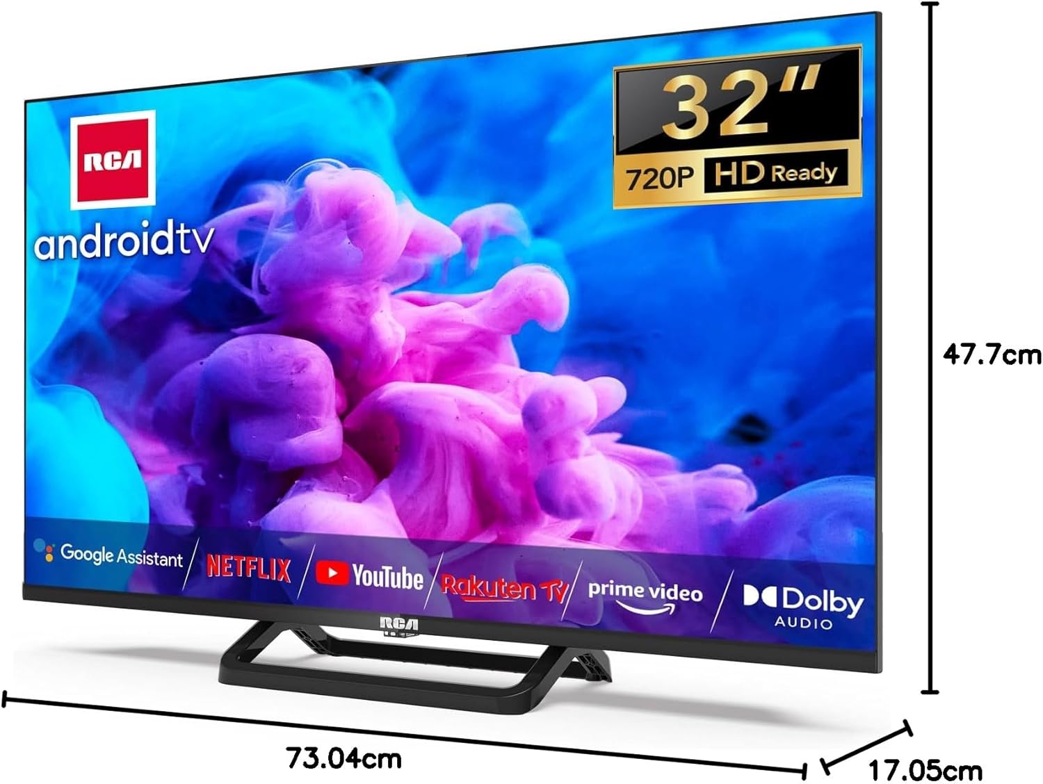 RCA Smart TV 32-инчов (80 см) телевизор Android TV HD Ready троен тунер App Store YouTube Netflix DAZN Disney+ WiFi Bluetooth (2023)