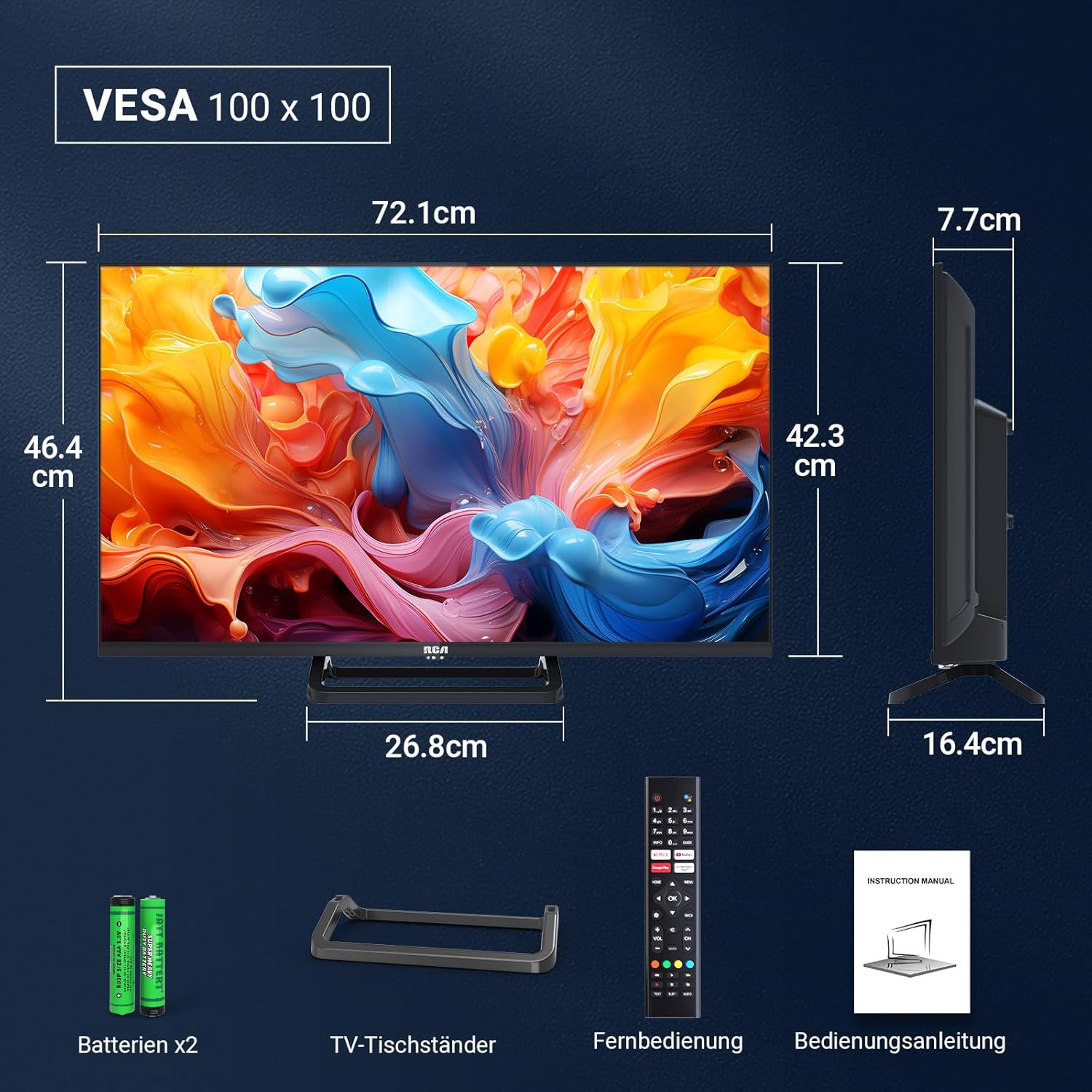 RCA SRG32HQ1C Smart TV 32 инча (80 см) Google TV HD с троен тунер, WiFi, Prime Video, Netflix, Google Play Store, DAZN, Disney+ [Мод. 2025]