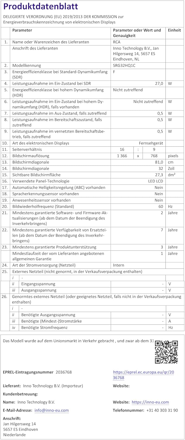 • HD Ready: Диагонал на екрана 80 см, резолюция: 1366*768 пиксела, честота на опресняване: 50/60 Hz