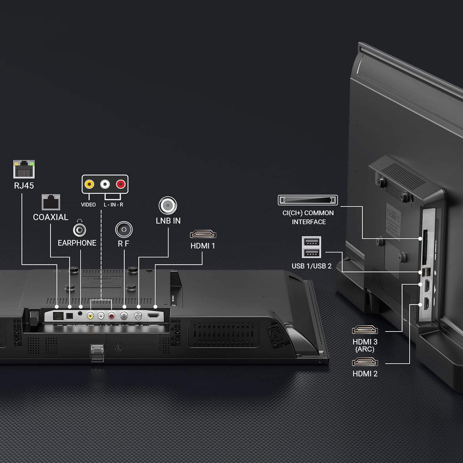 • Външни интерфейси: HDMI*3, USB*2, CI/CI+, слушалки, RJ45, оптичен, AV, RF*2
