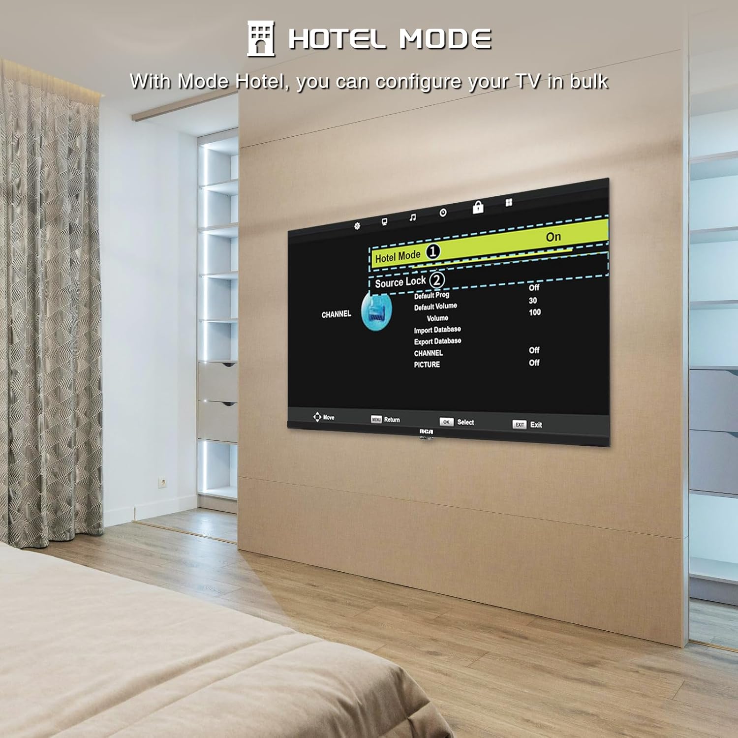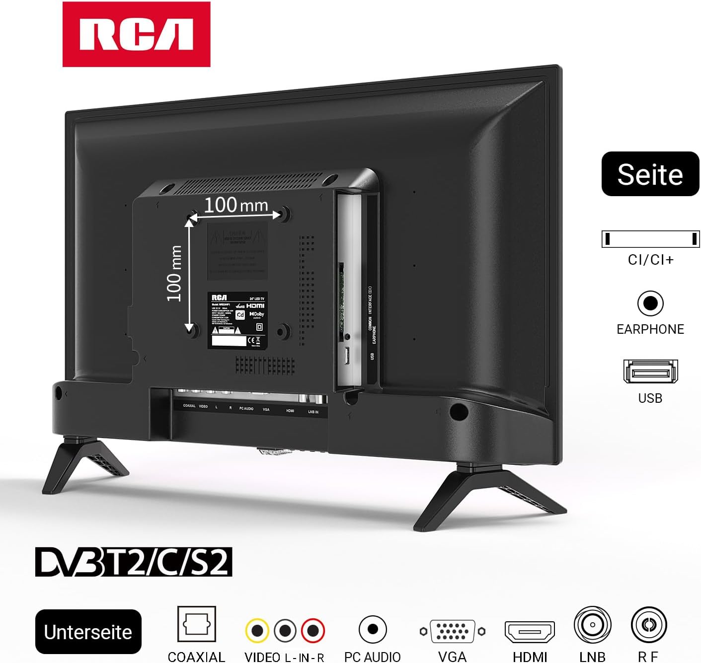 RCA телевизор 24 инча (60 см) LED HD за спалня/кухня с троен тунер (DVB-T/T2-CS/S2), HDMI, VGA, мултимедиен плейър, USB, CI+, хотелски модел (220 волта)