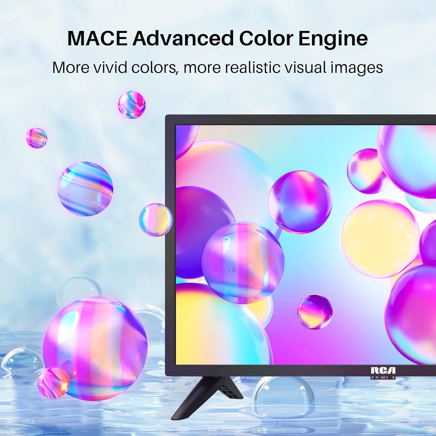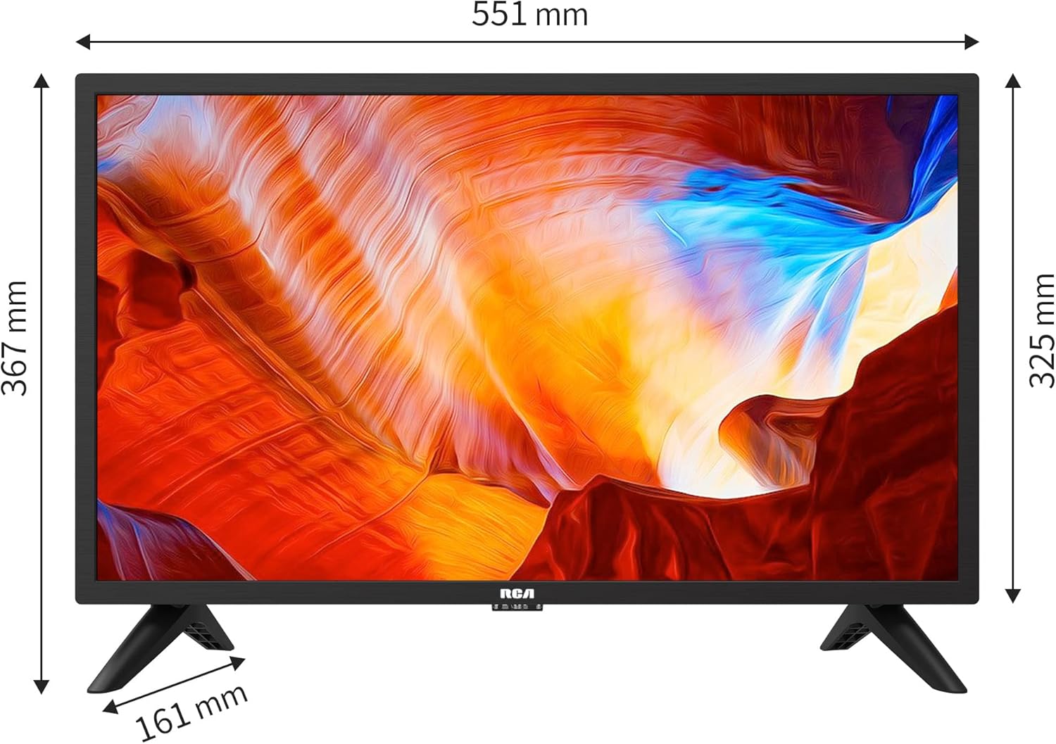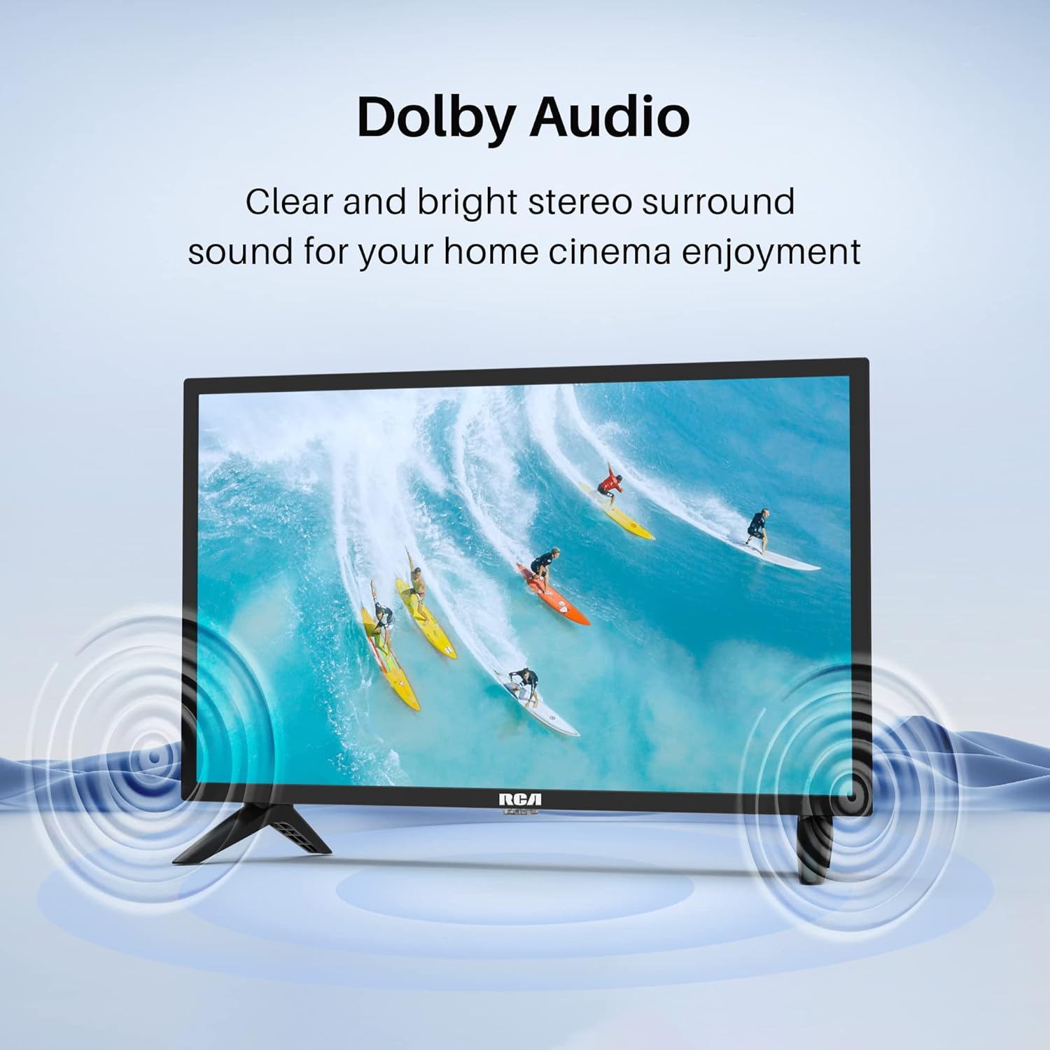 RCA TV 24" LED HD Малък телевизор за спалня/кухня с троен тунер (DVB-T/T2-CS/S2), HDMI, VGA, мултимедиен плейър, USB, CI+, хотелски модел, 220V