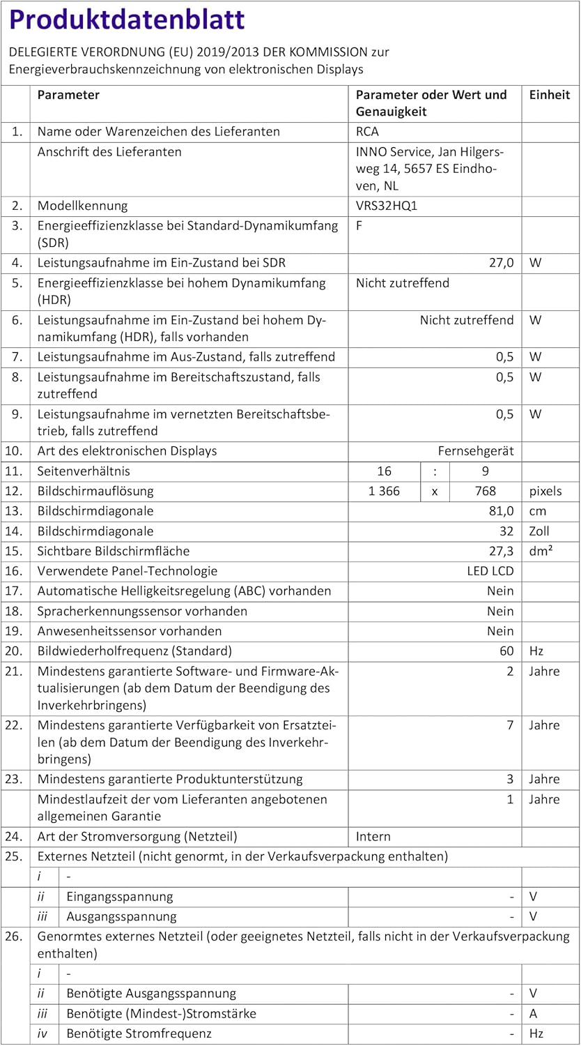 • HD Ready: Диагонал на екрана 80 см, резолюция: 1366*768 пиксела, честота на опресняване: 50/60 Hz