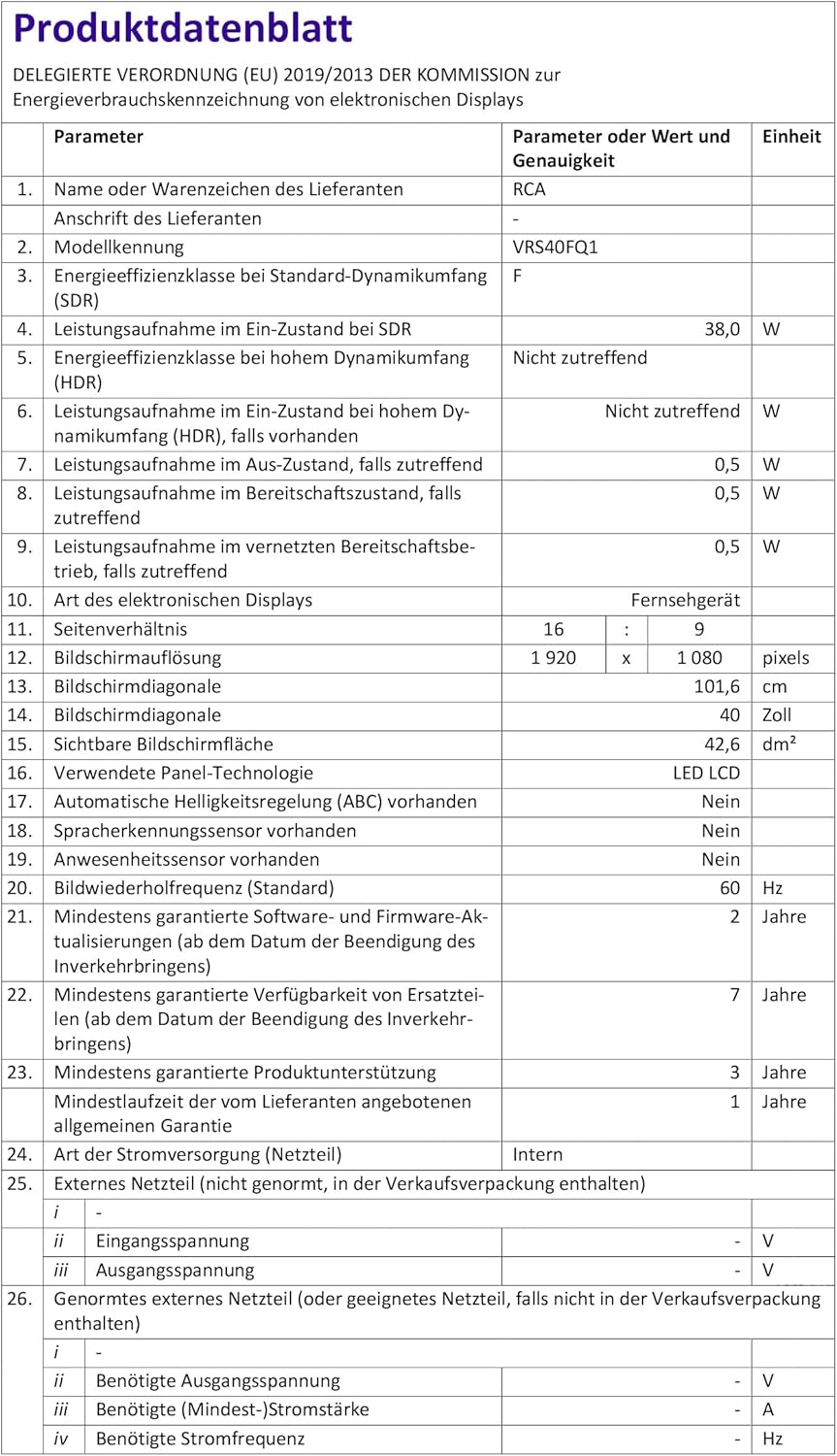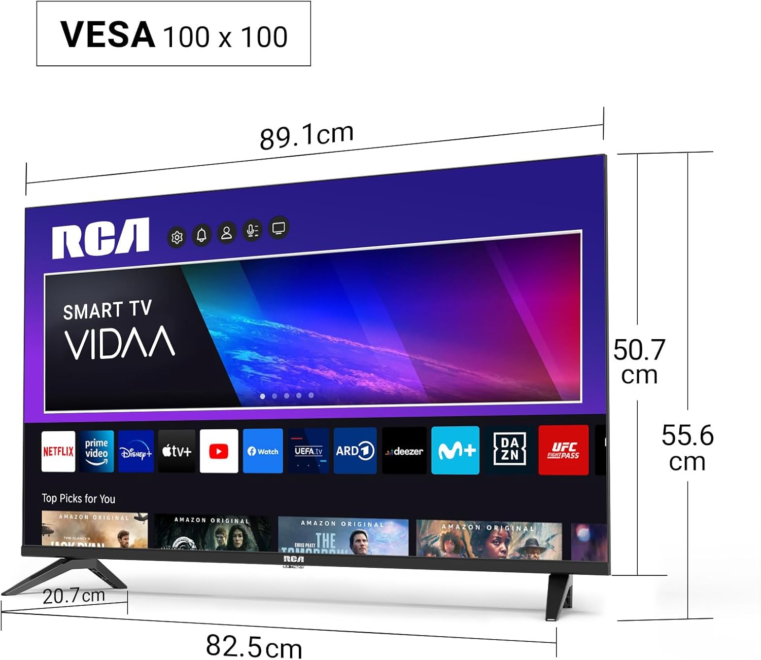 RCA VRS40FQ1 Smart TV 40-инчов (100 см) FHD телевизор с WiFi, троен тунер (DVB-T/T2, DVB-C, DVB-S/S2), App Store, Prime Video, Netflix, YouTube, DAZN, Disney+ [RVSmart 2024]