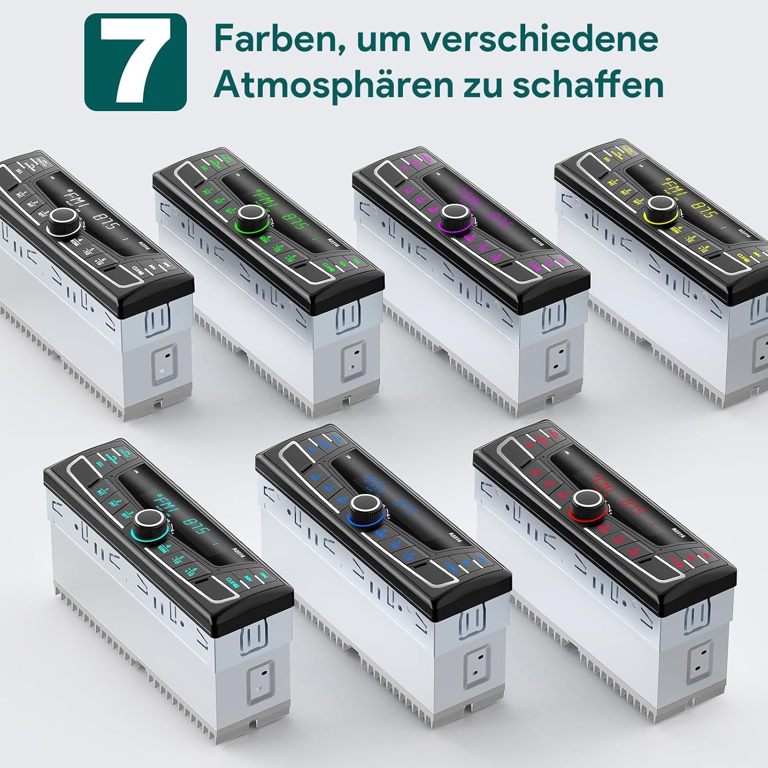 • Ясен LCD екран и 7-цветни амбиентни светлини: Автомобилното радио Wisture има ясен и голям екран, който улеснява четенето. Седемте му цветови опции създават настроение и комбинират светлина със звук за уютно изживяване в купето.