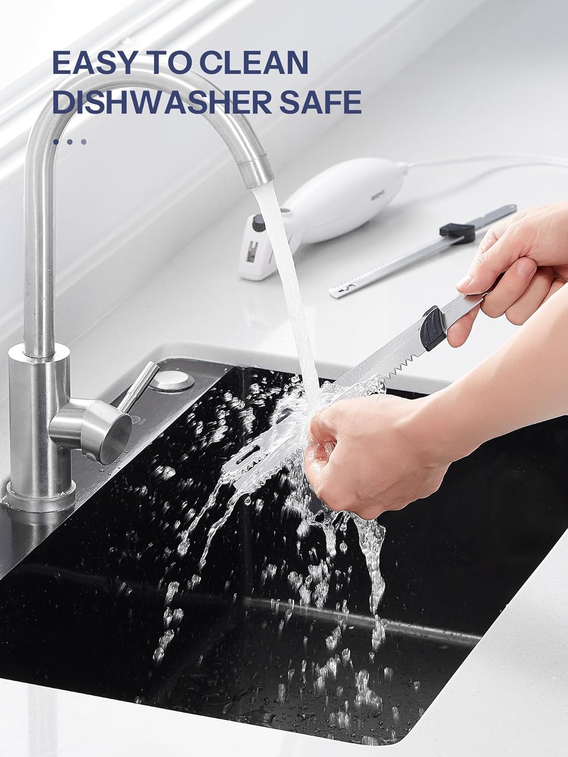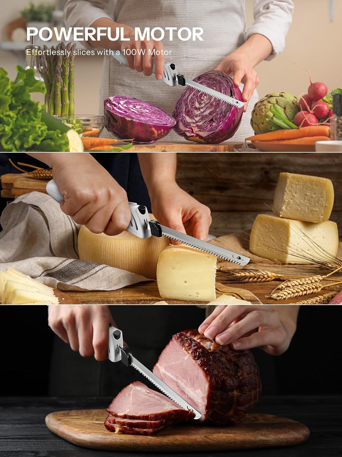 Електрическият нож Reemix се предлага с две различни остриета. Острието за месо има по-остри зъби и е идеално за рязане както на сготвено, така и на сурово месо.