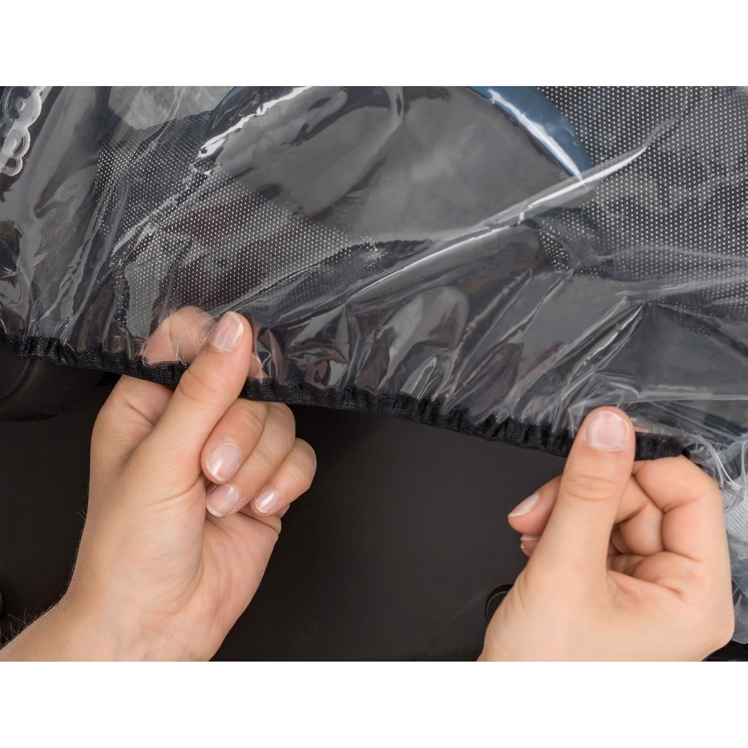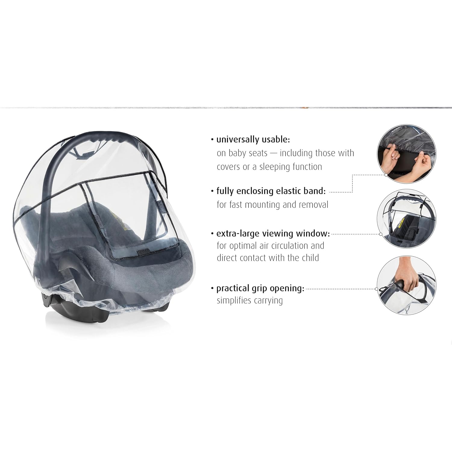 Защитете малките си от вятър и лошо време! Мрежестите отвори осигуряват свеж въздух дори под дъждобрана без PVC. Независимо дали сте на разходка или пазаруване, дъждобраната надеждно предпазва бебето ви от вятър и лошо време. Големите странични мрежести отвори осигуряват постоянен въздушен поток. Практичният отвор за дръжка улеснява носенето. За здравето на вашето дете, дъждобраната не съдържа PVC и пластификатори. Подходяща за всички столчета за кола за бебета от група 0 и 0+.