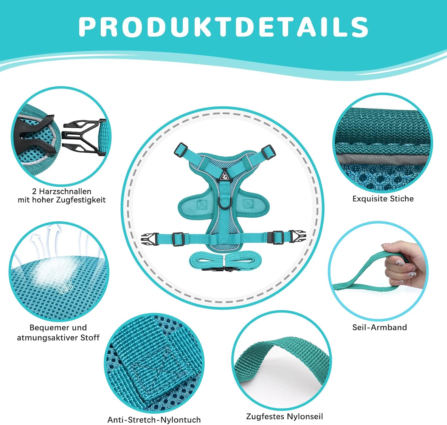 Регулируем котешки нагръдник Grantop, защитен от бягство котешки нагръдник с комплект каишки, мек нагръдник за котки, котенца, кучета, кученца, Blue Lake, размер S