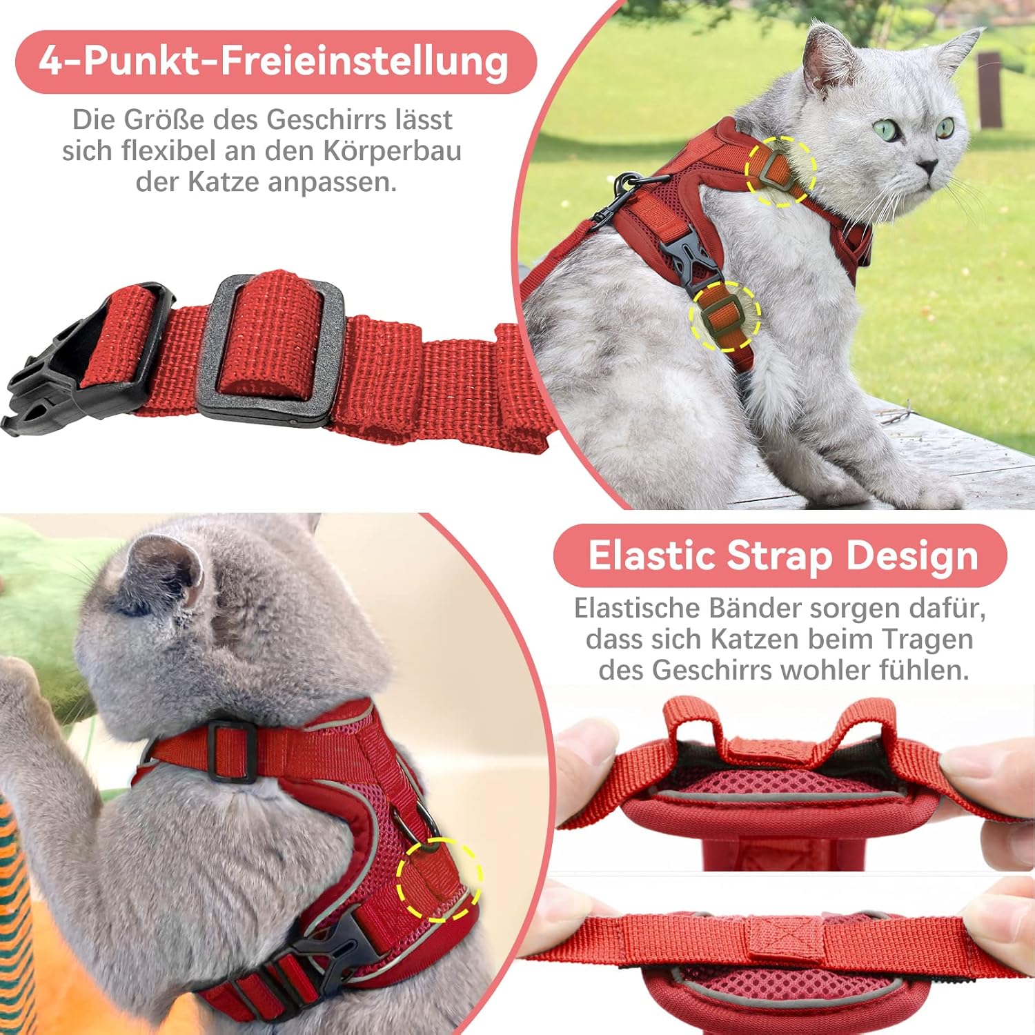 • Регулируем и удобен: Нашият котешки нагръдник против бягство има регулируеми катарами, които могат да се регулират, за да осигурят на котките по-голям комфорт. Независимо дали сте у дома или в движение, котешкият нагръдник с каишка е чудесна помощ за вас и вашата котка.