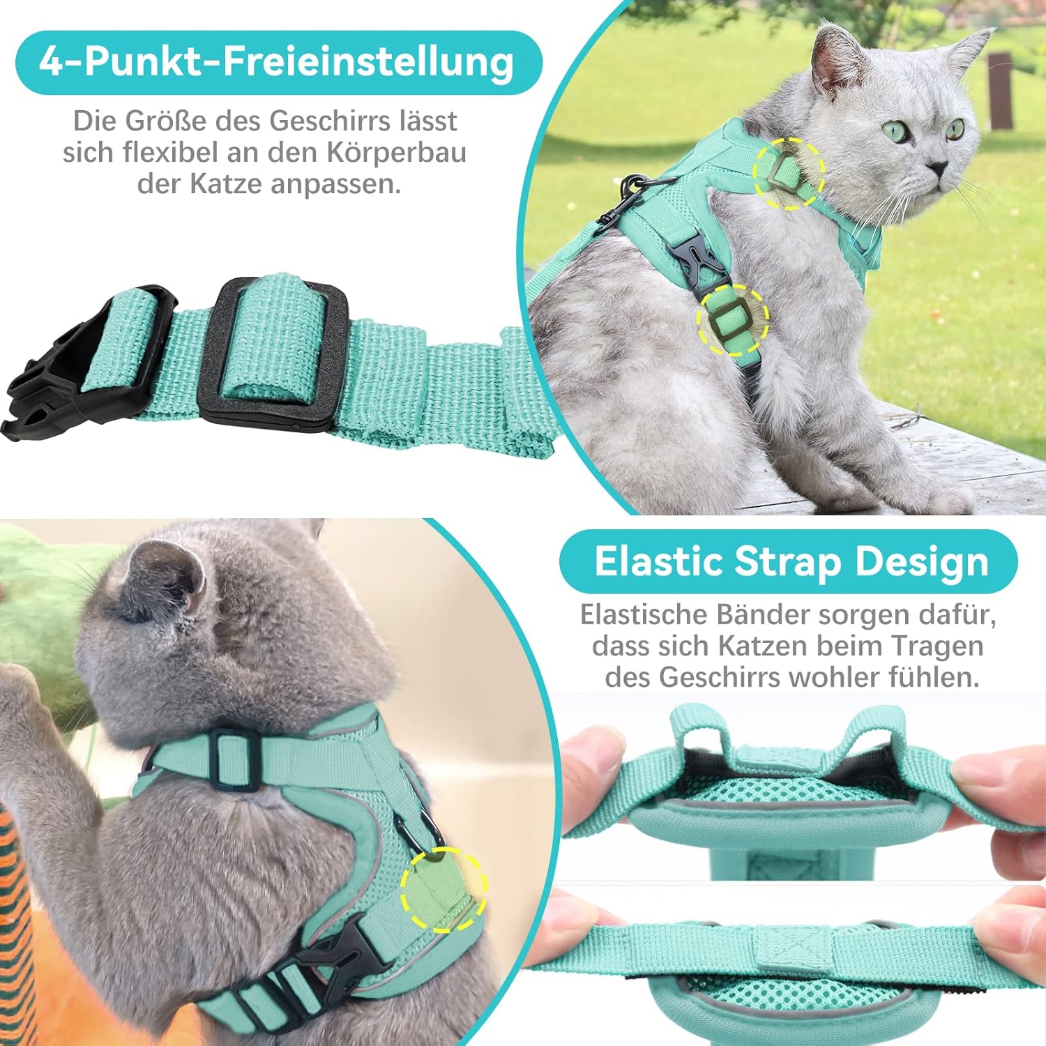 Регулируем котешки нагръдник Grantop, защитен от бягство котешки нагръдник с комплект каишки, мек нагръдник за котки, котенца, кучета, кученца, ментово зелен, M