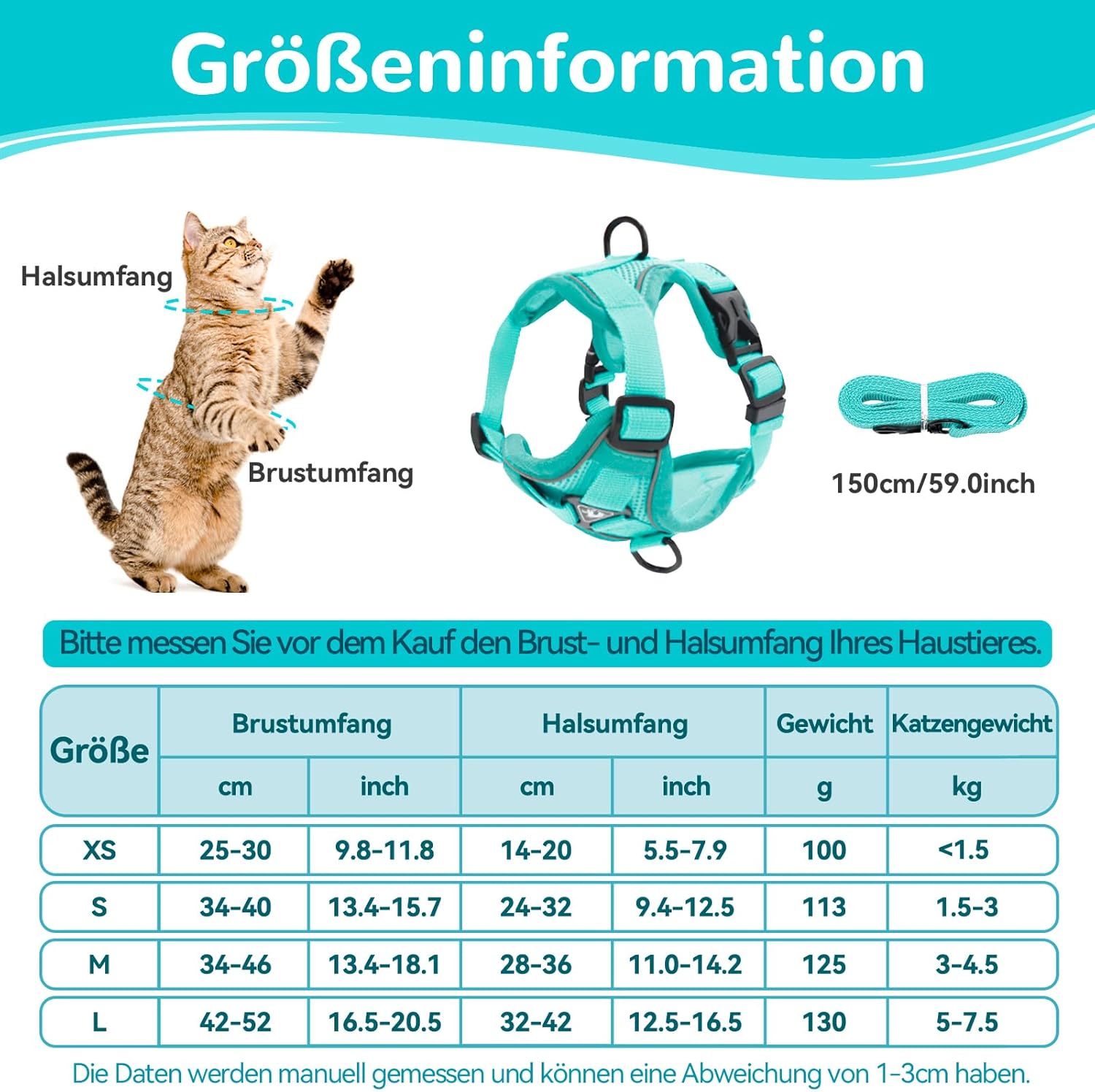 • Размер: Ще получите синьо морско яке размер M (гръдна обиколка: 34-40 см) с дължина на повода 1,5 метра. Моля, измерете внимателно гръдната обиколка на вашия домашен любимец преди покупка, за да си осигурите по-добро носене.