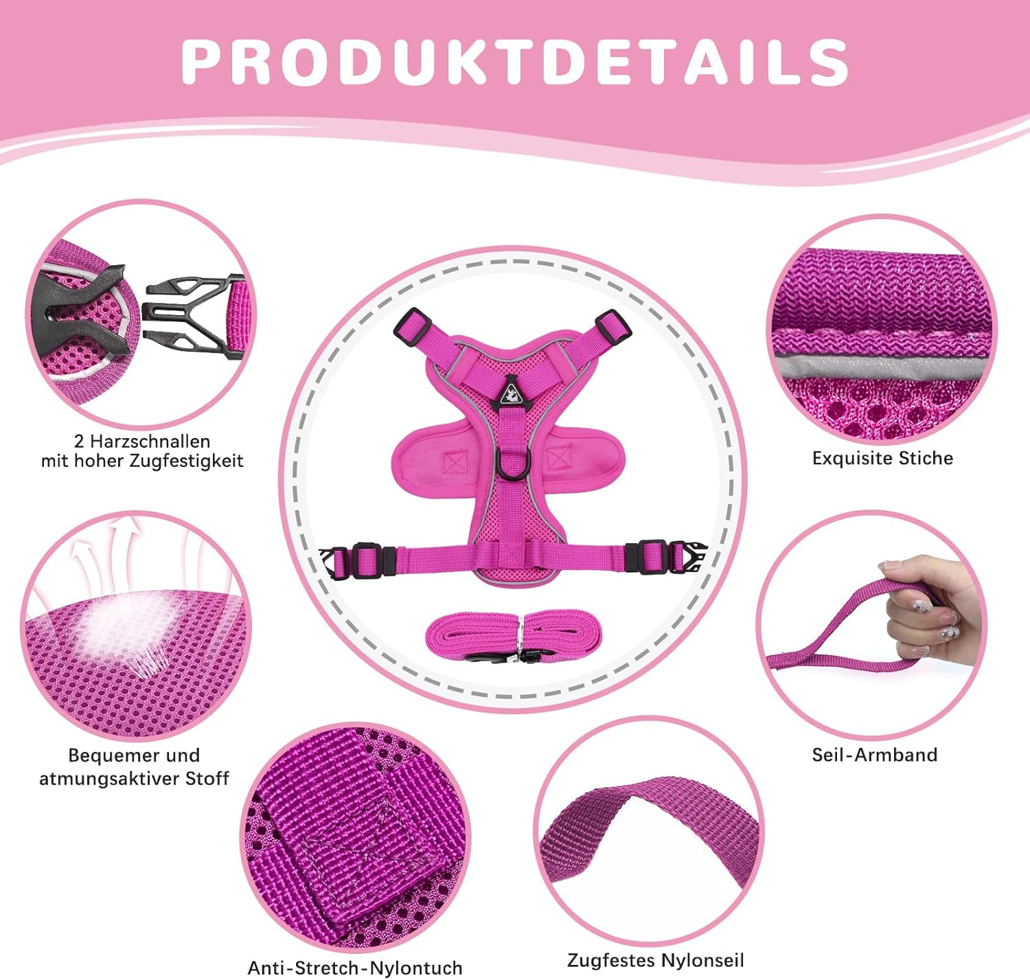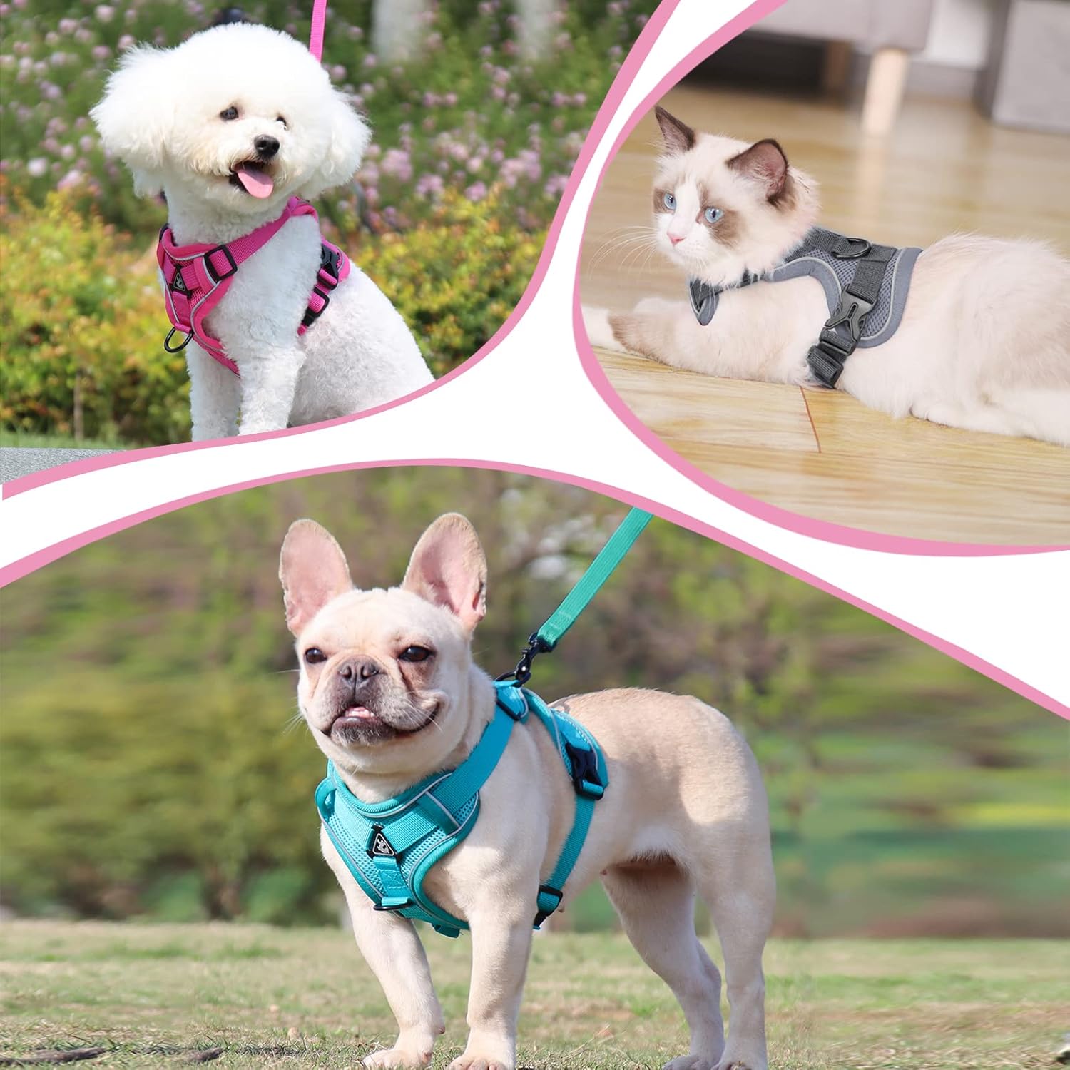 Регулируем котешки нагръдник Grantop, защитен от бягство котешки нагръдник с комплект каишки, мек нагръдник за котки, котенца, кучета, кученца, розов, M