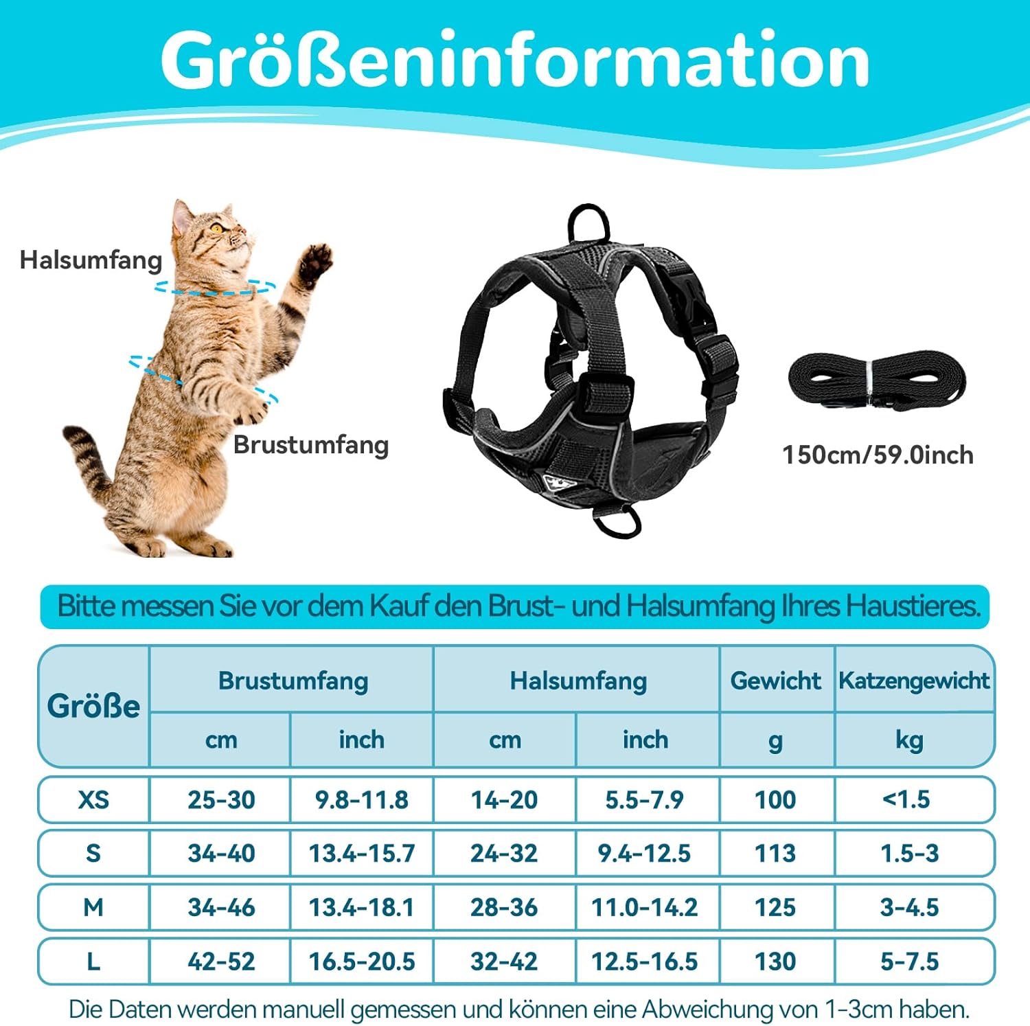 • Размер: Ще получите синьо морско яке размер M (гръдна обиколка: 34-40 см) с дължина на повода 1,5 метра. Моля, измерете внимателно гръдната обиколка на вашия домашен любимец преди покупка, за да си осигурите по-добро носене.