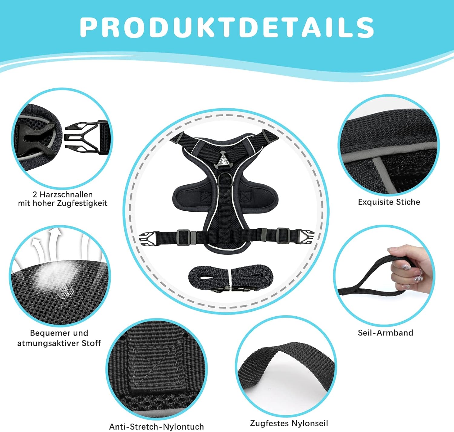 Регулируем нагръдник за котки Grantop, защитен от бягство нагръдник с комплект каишки, мек нагръдник за котки, котенца, кучета, кученца, черен, M