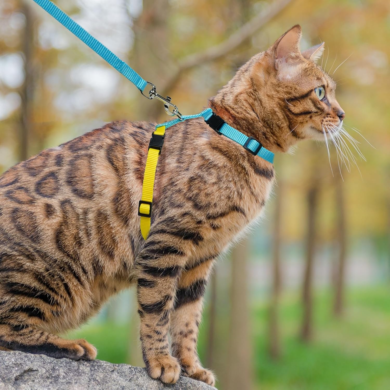 Регулируем нагръдник за котки PUPTECK с каишка - Нагръдник за котенца, предпазващ от бягство, в синьо/жълто