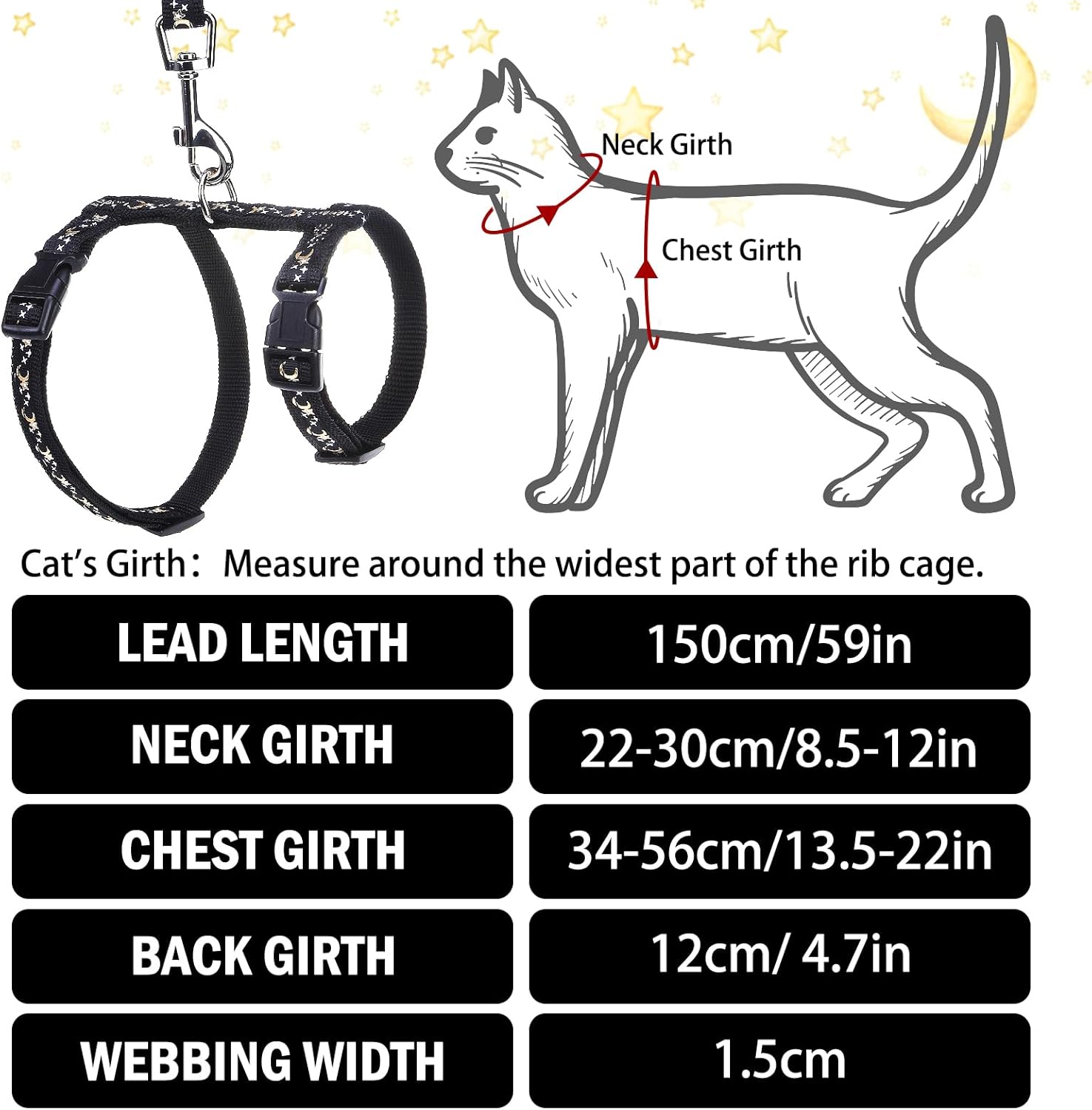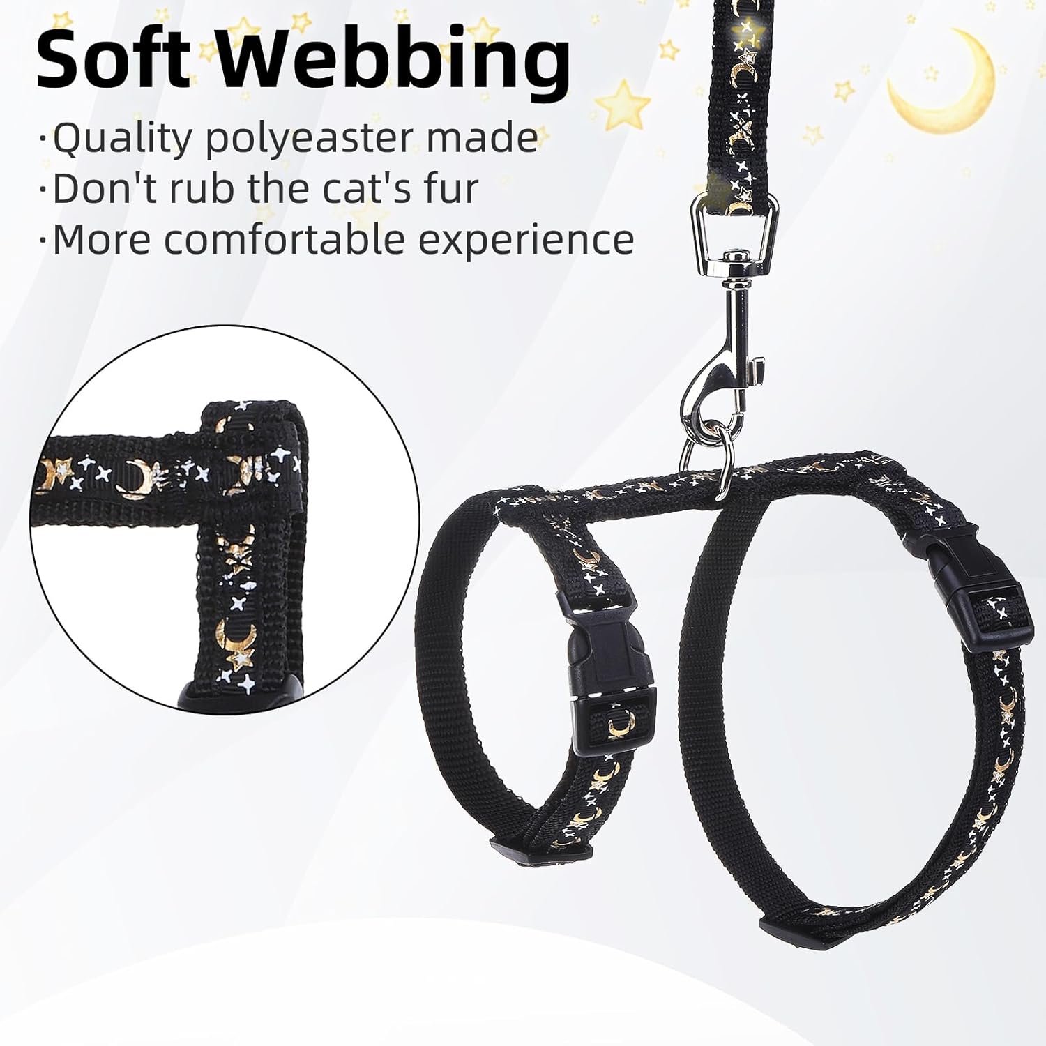 Регулируем нагръдник за котки PUPTECK с каишка - Нагръдник за котенца, защитен от бягство, с дизайн „Луна и звезди“, размер M