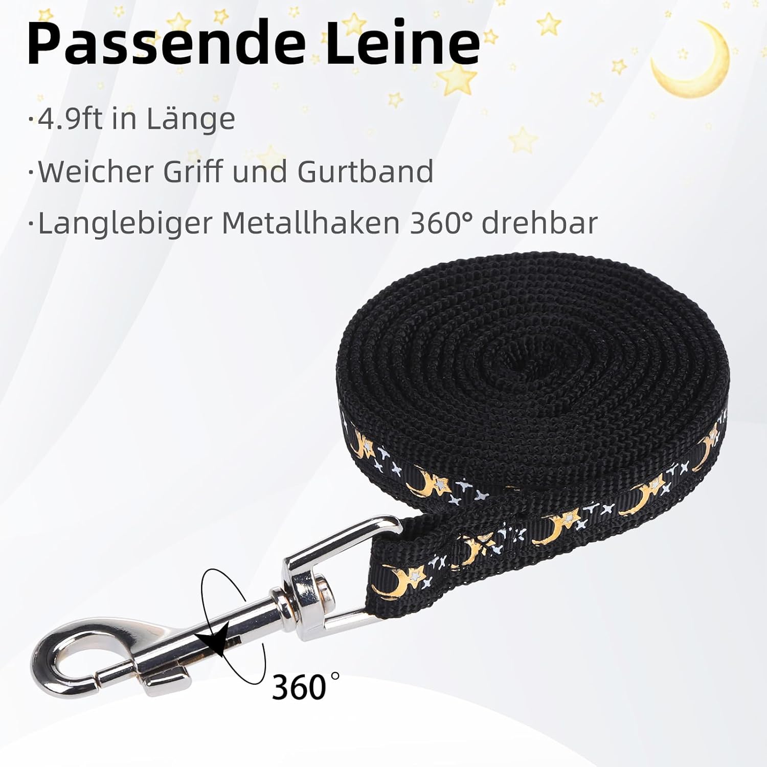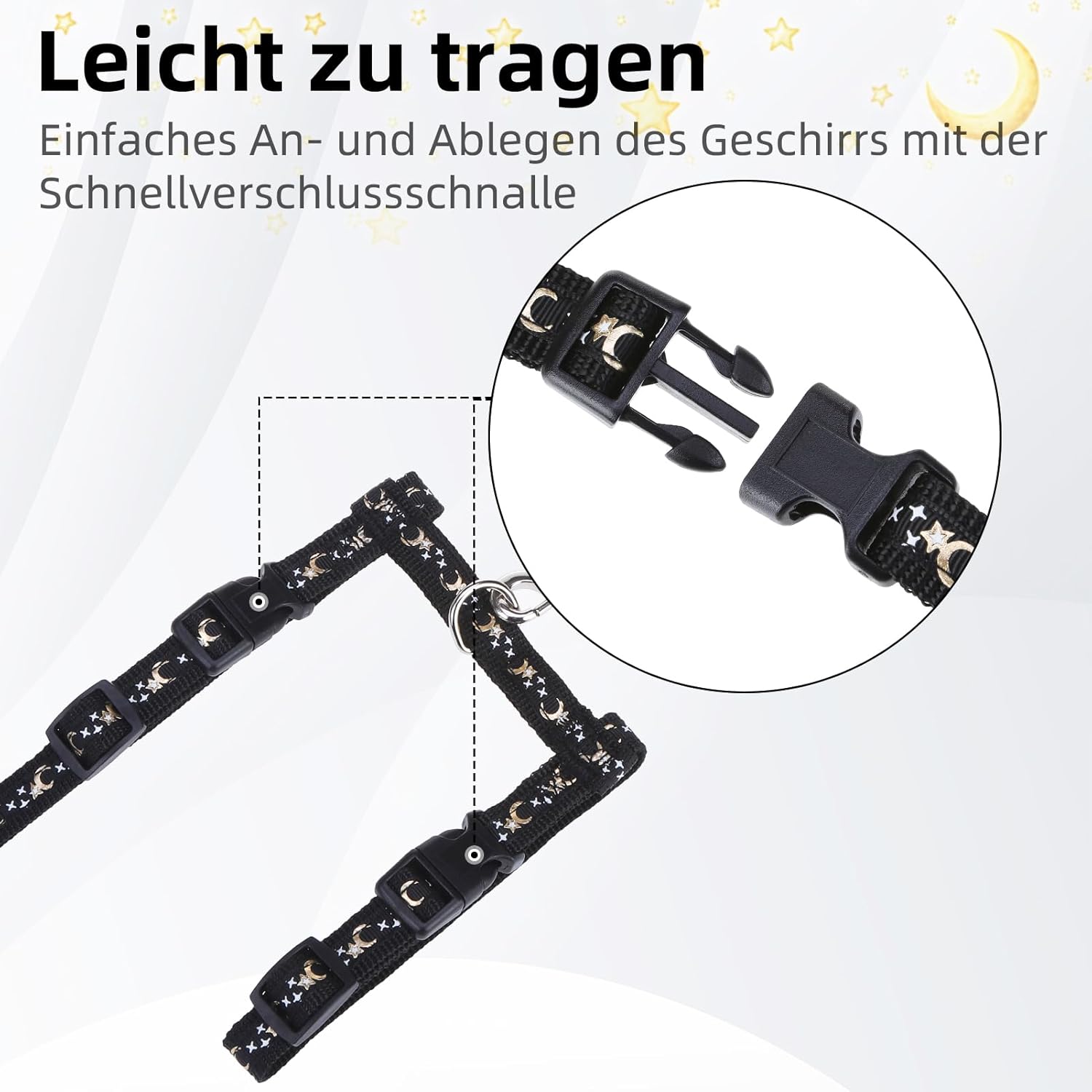 Регулируем нагръдник за котки PUPTECK с каишка - Нагръдник за котенца, защитен от бягство, за разходки и пътуване, дизайн Moon & Stars