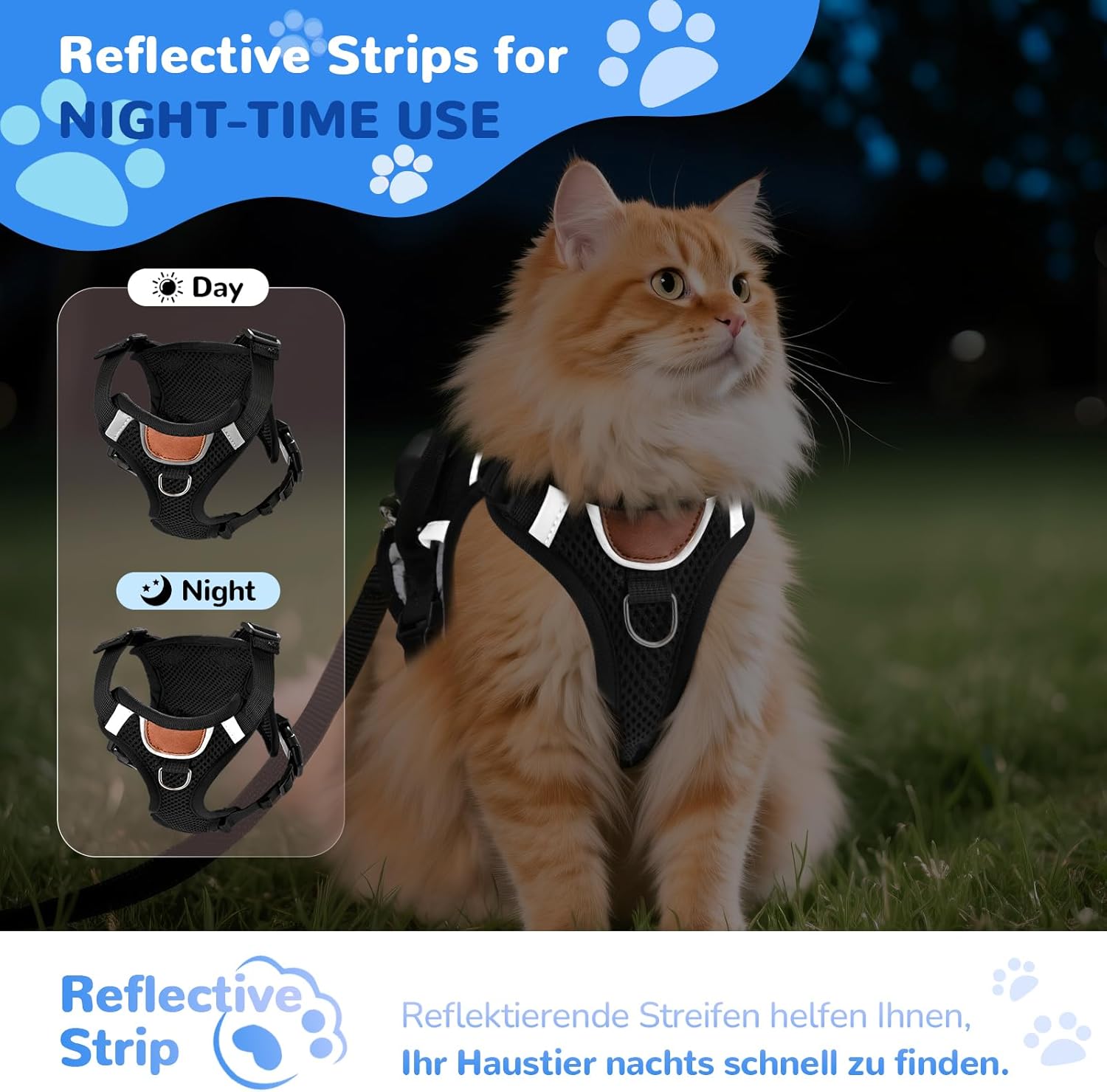 Светлоотразителните ленти светят ярко, когато са изложени на светлина, правят котката ви ясно видима дори в тъмното и надеждно предупреждават шофьорите. Така вашето мъниче е оптимално защитено при всички нощни приключения.