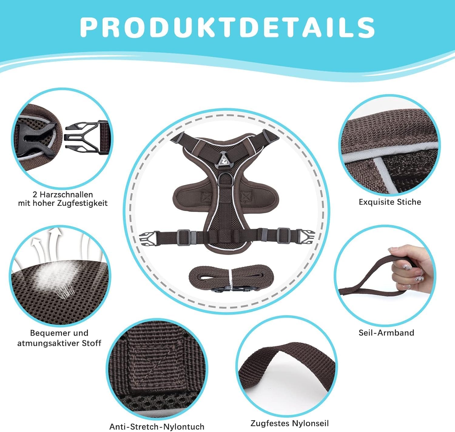 Регулируем нагръдник за котки, Защита от бягство, Нагръдник за котки с комплект каишки, Мек нагръдник за котки, Нагръдник за котки, Котенца, Кучета, Кученца (Кафяв, XS)