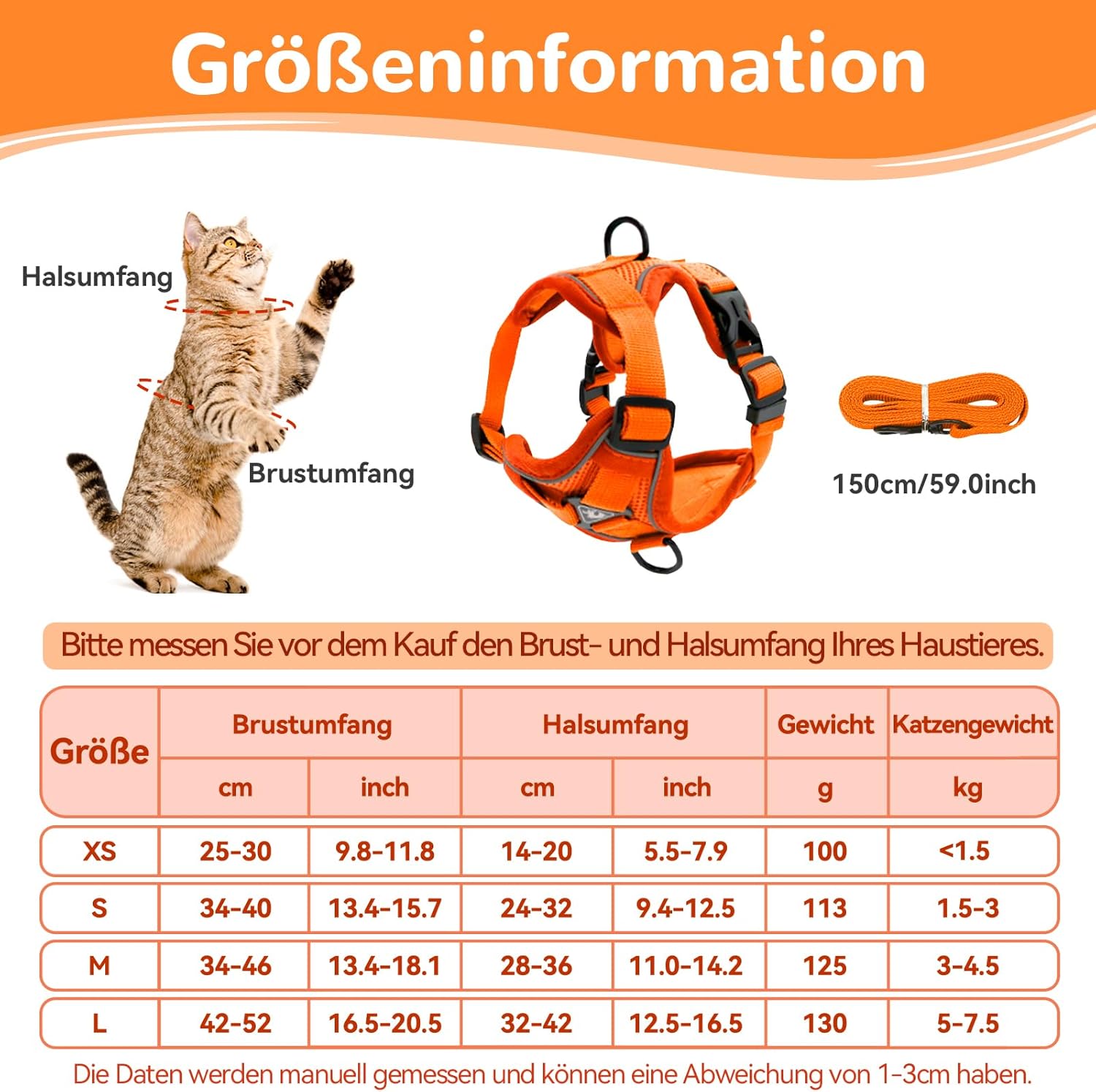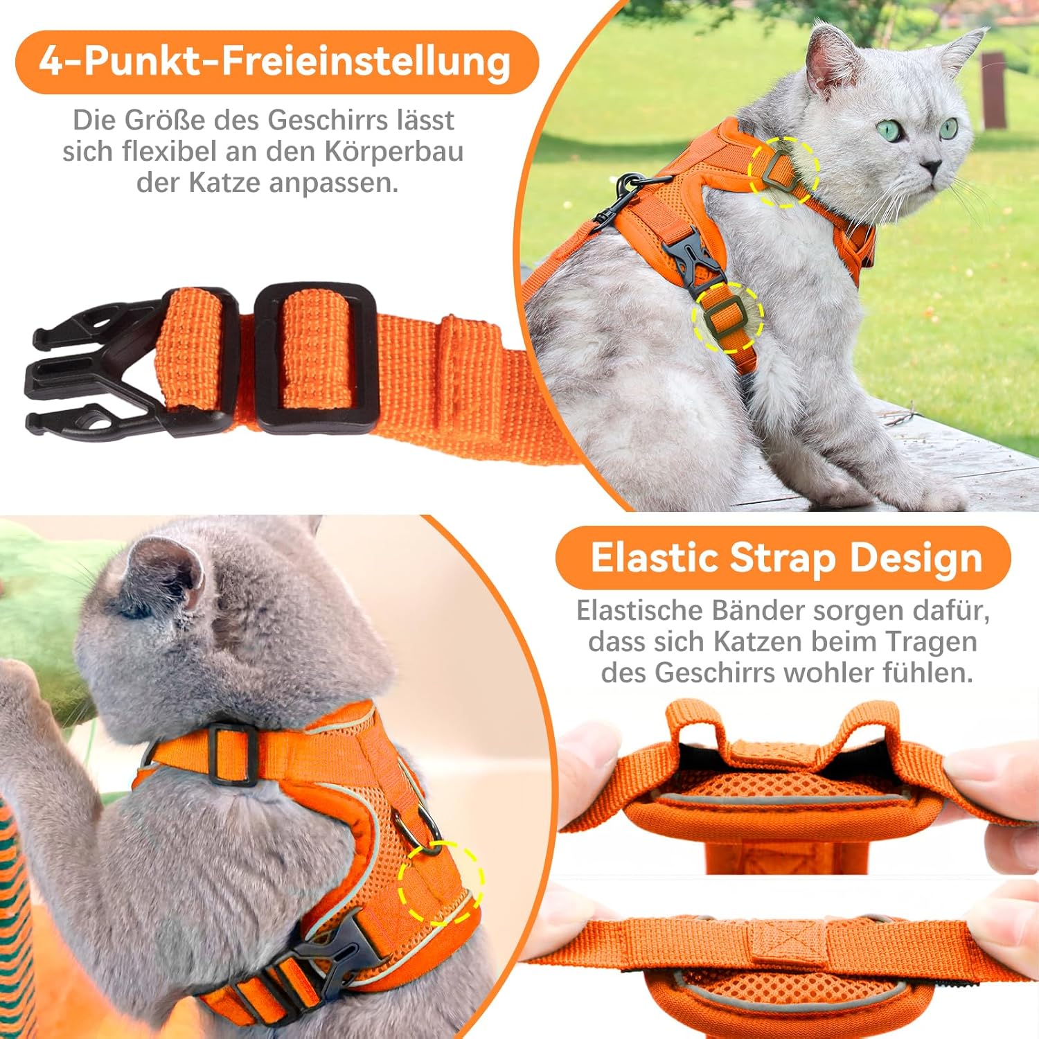 Регулируем нагръдник за котки, Защита от бягство, Нагръдник за котки с комплект каишки, Мек нагръдник за котки, Нагръдник за котки, Котенца, Кучета, Кученца (Оранжев цвят, XS)